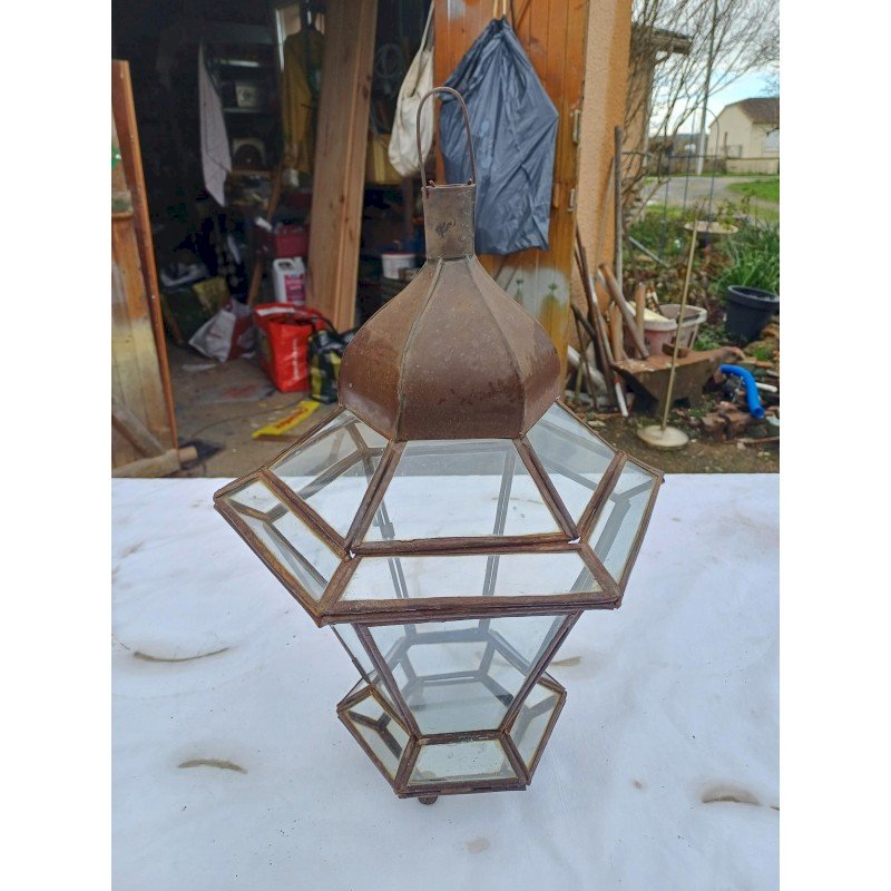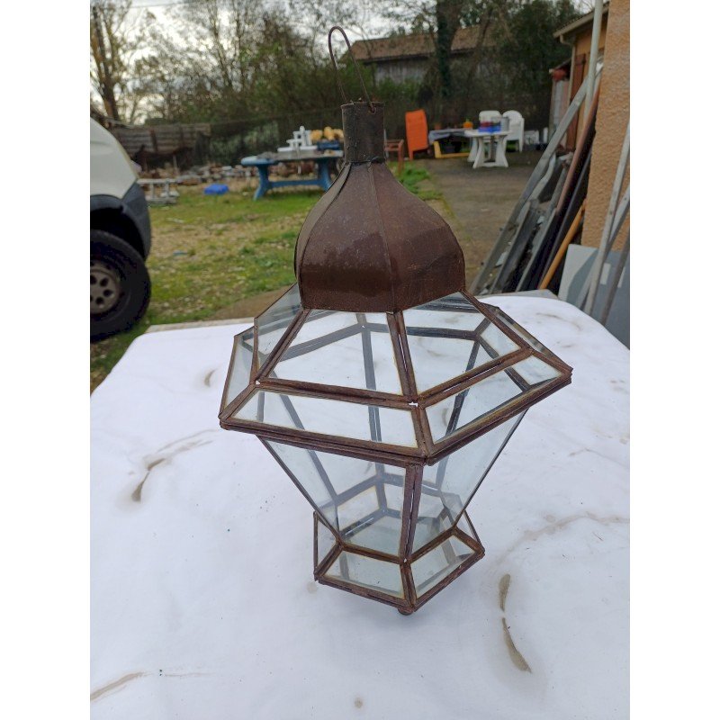 Lampe suspension Métal et verre , Haut 40 cm , Diam : 25 cm , trés bon ètat