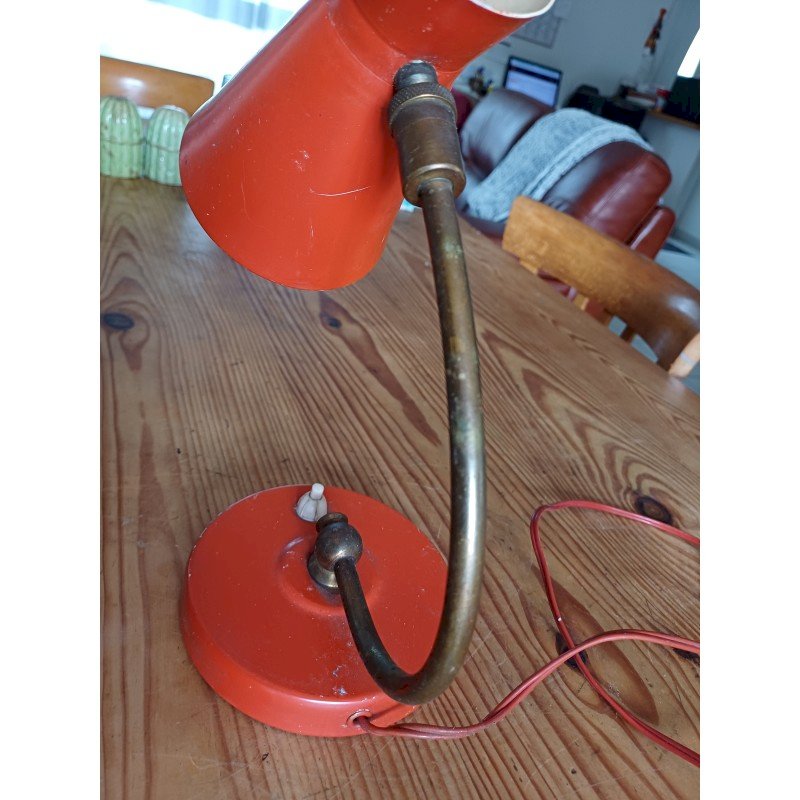 Lampe Vintage des Années 50 , Métal et Laiton , orientable , Haut : 27 cm , Diam socle : 12 cm , Diabolo : 13 cm sur 9,5 cm , poids : 530 g , Bon ètat dans son jusÂ