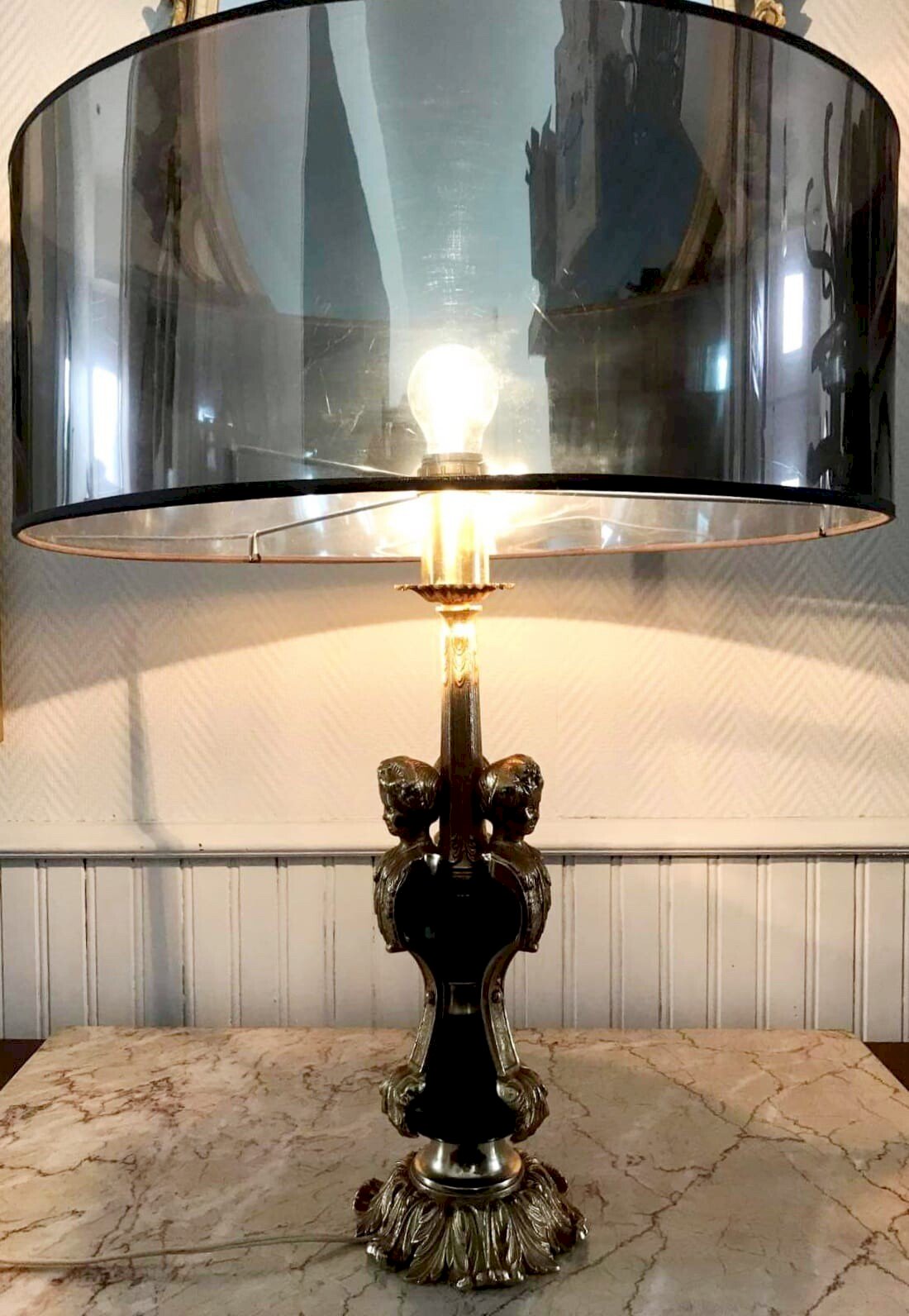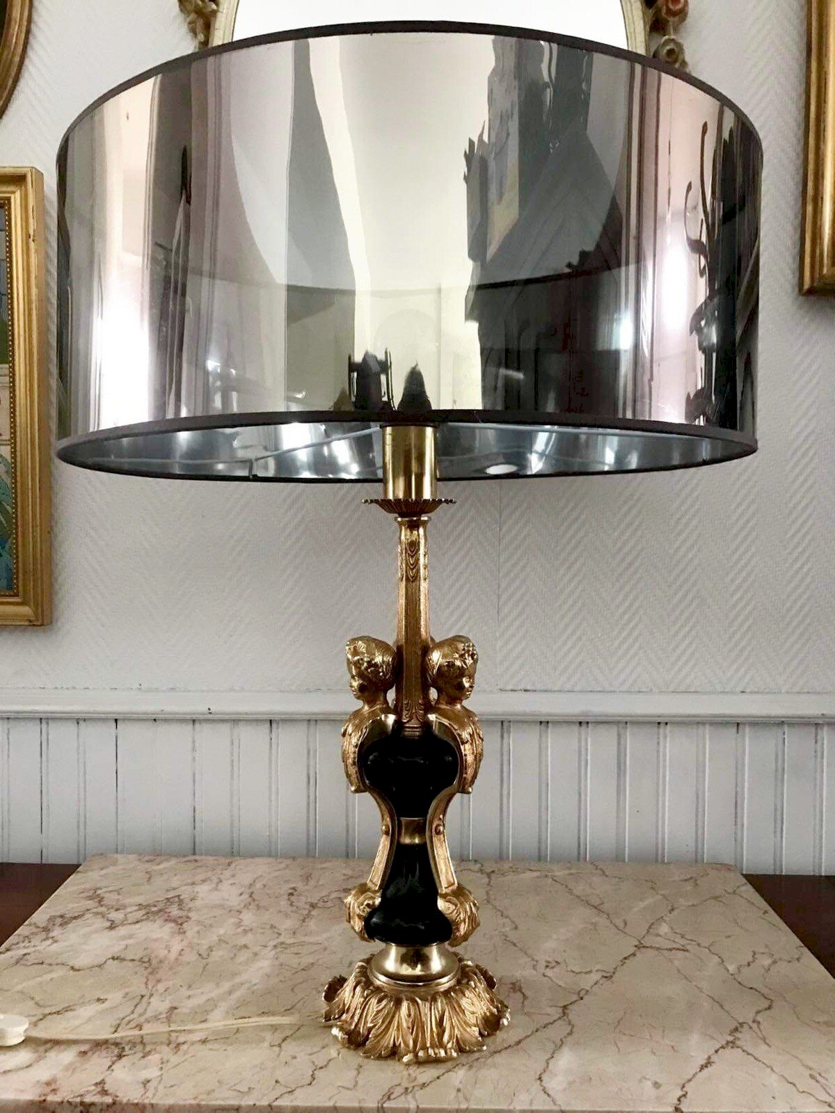 Lampe vintage or et noire style Empire, luminaire ancien