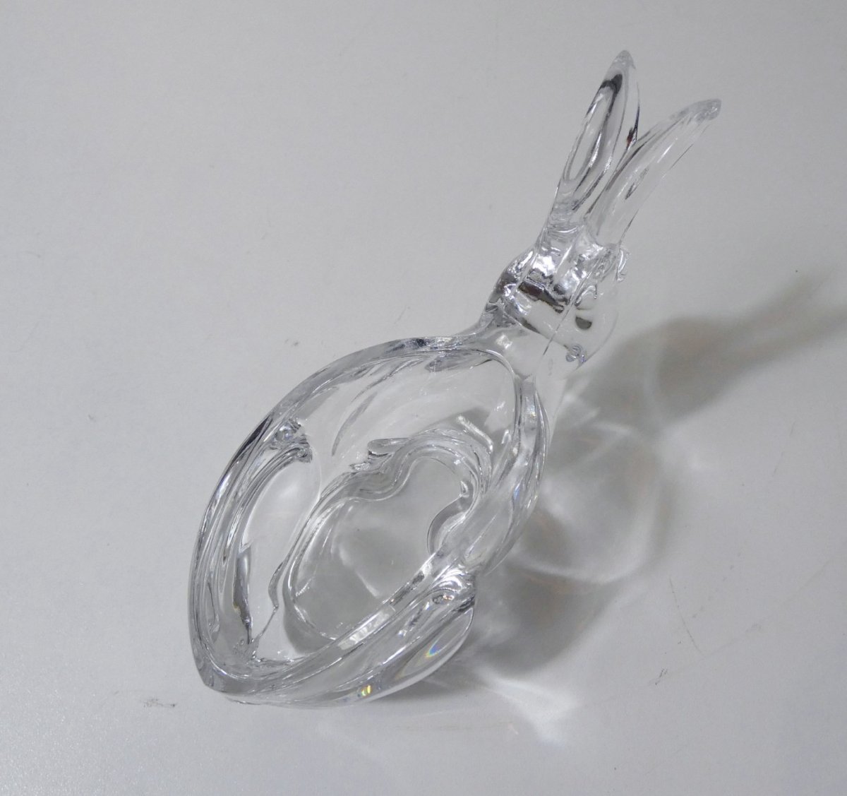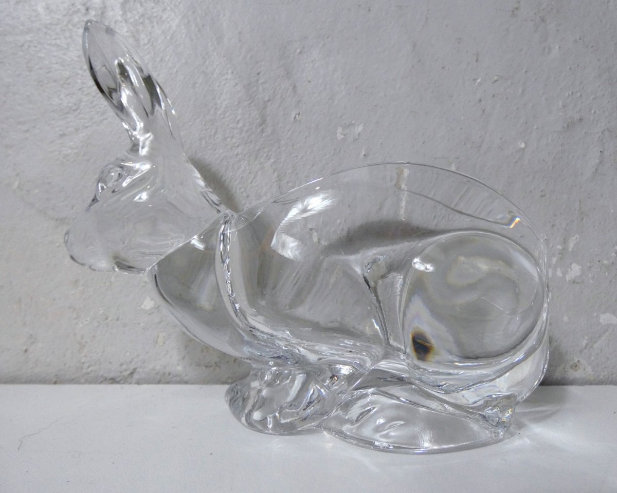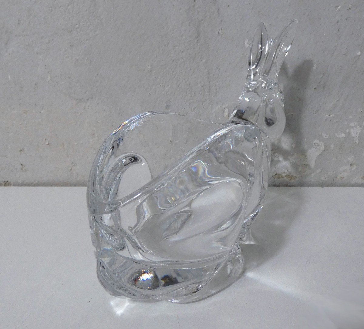 Lapin vide-poche en cristal. Hauteur: 13 cm. Largeur: 8 cm. Longueur: 16,6 cm. Excellent état, pas d’éclats ni fêles.