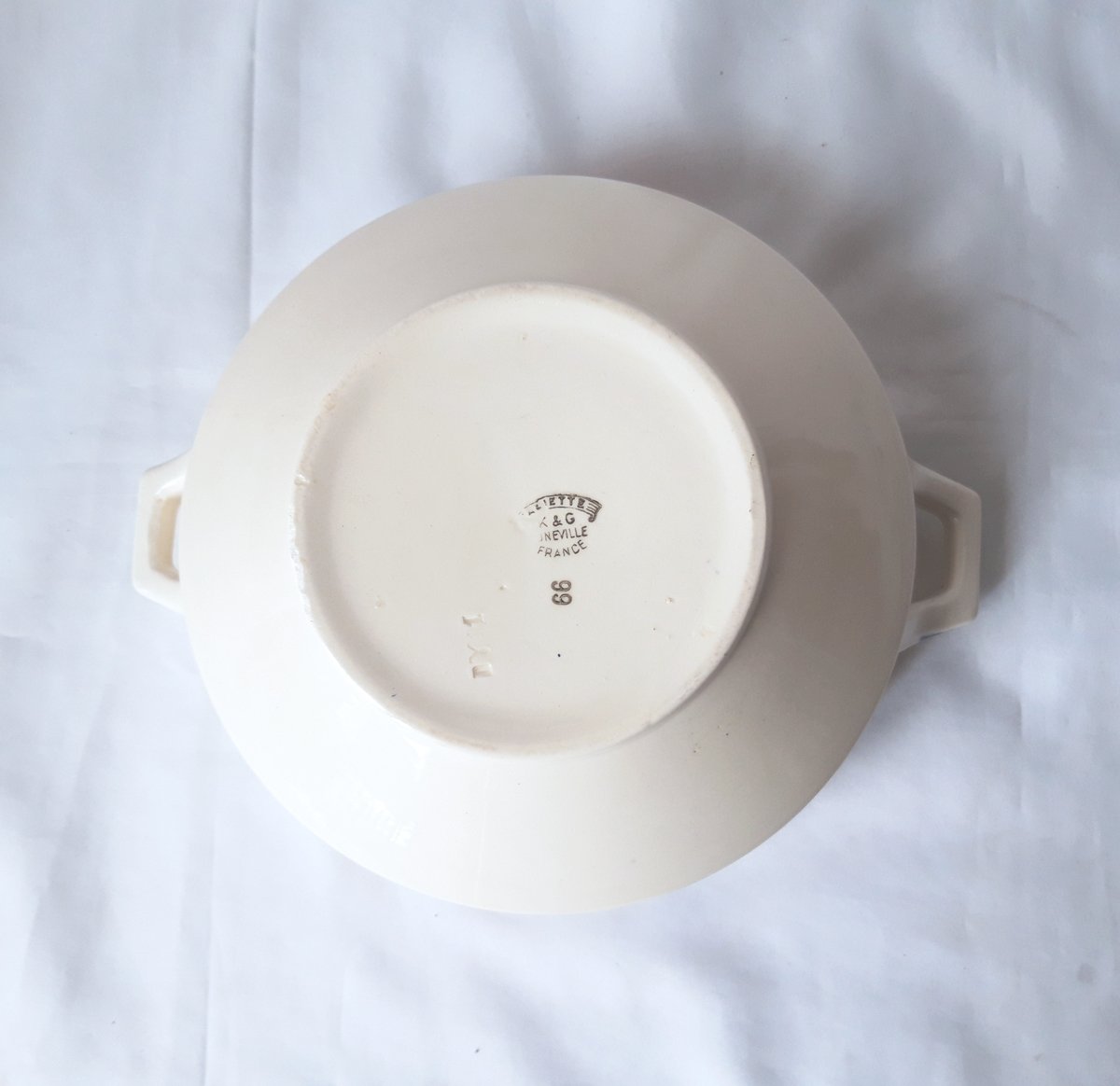 Saladier avec anses Badonviller Francine vintage , faïence décor floral