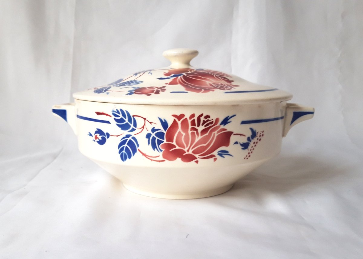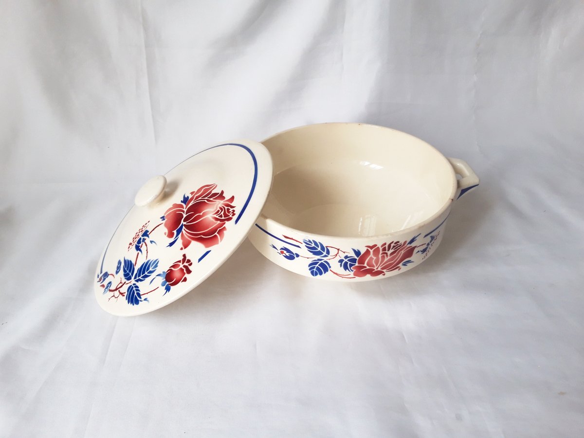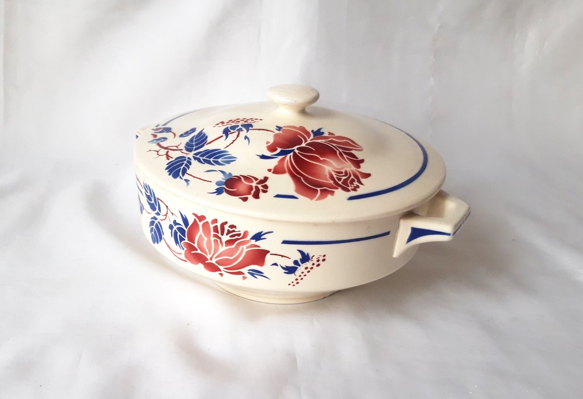 Légumier vintage faïence de Lunéville décor rare Bleu/Rouge Floral,Végétal