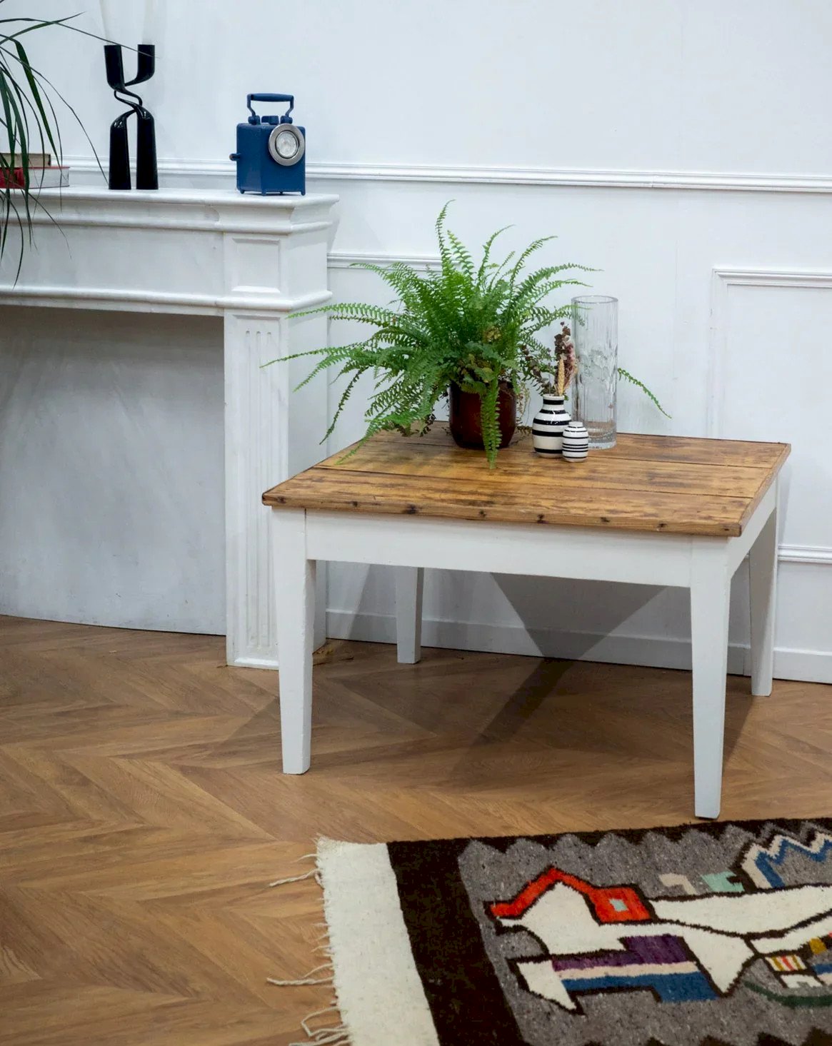 Apportez une touche de charme à votre intérieur avec cette table basse en bois peint blanc. Son plateau en bois brut, avec ses nuances authentiques, crée un contraste chaleureux et agréable. Idéale pour une ambiance cosy, elle se marie parfaitement avec différents styles de décoration. Pratique et esthétique, elle deviendra vite l'élément central de votre salon. Longueur : 88 cm Largeur : 82 cm Hauteur : 55 cm État:Occasion: Objet ayant été utilisé. Objet présentant quelques marques d'usure superficielle, ...Occasion: Objet ayant été utilisé. Objet présentant quelques marques d'usure superficielle, entièrement opérationnel et fonctionnant correctement. Il peut s'agir d'un modèle de démonstration ou d'un objet retourné en magasin après une courte période d'utilisation. les éventuelles imperfections. Marque:Debongout Type:Produit chiné Matériau:Bois Style:Campagne Personnalisé:Tables basses