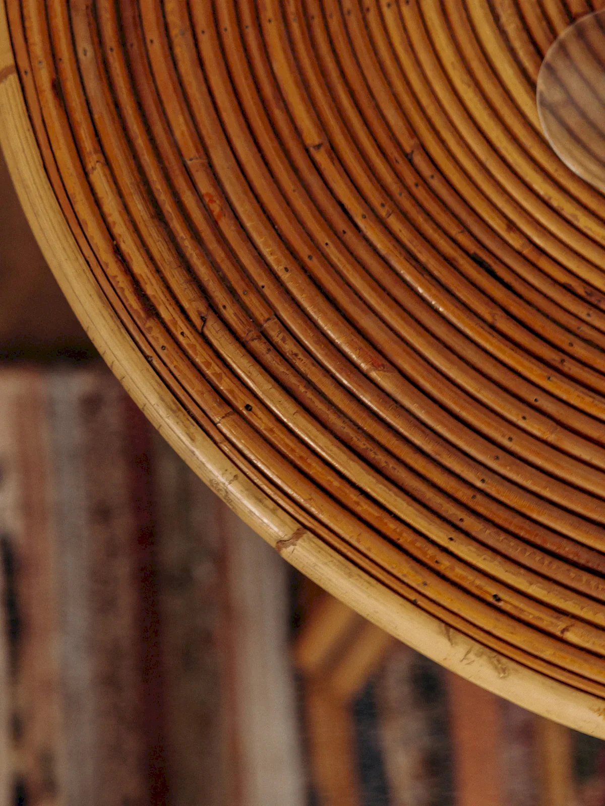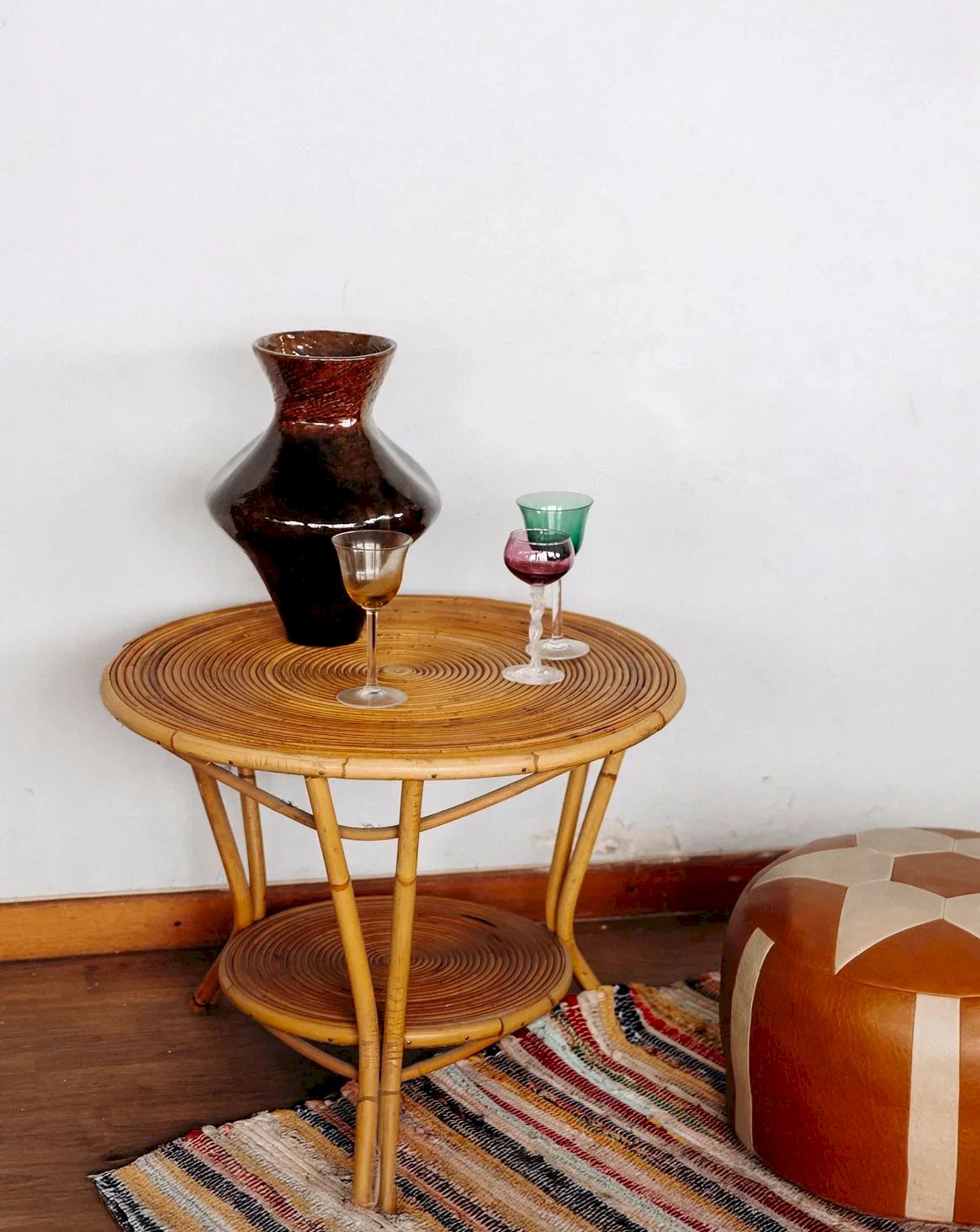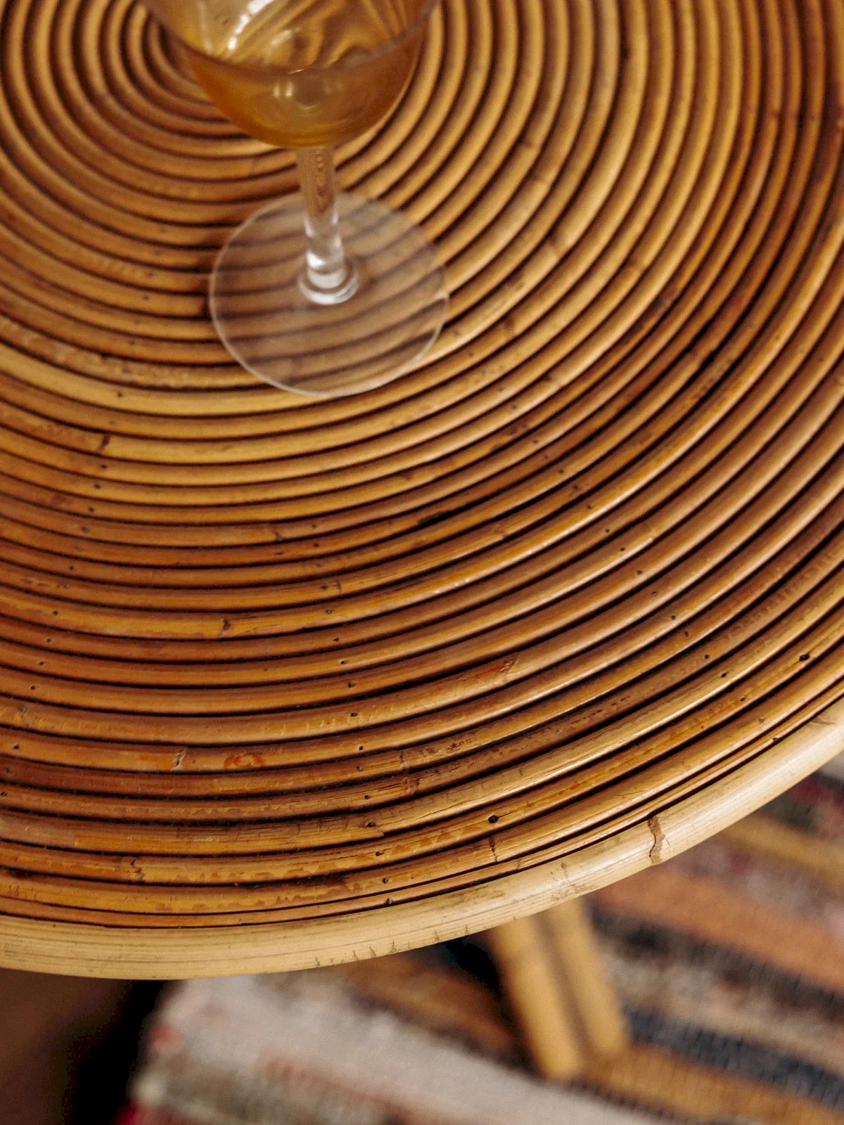Cette table basse en rotin ronde allie légèreté et charme naturel. Son design simple et raffiné, accompagné de la texture du rotin, apporte une touche bohème et chaleureuse à votre salon. Parfaite pour ajouter une note authentique et conviviale à votre décoration, elle s’intègre facilement dans des intérieurs modernes ou vintage. Exclusivité web, la rencontre se fera chez vous ! Hauteur : 48 cm Diamètre : 65 cm État:Occasion: Objet ayant été utilisé. Objet présentant quelques marques d'usure superficielle, ...Occasion: Objet ayant été utilisé. Objet présentant quelques marques d'usure superficielle, entièrement opérationnel et fonctionnant correctement. Il peut s'agir d'un modèle de démonstration ou d'un objet retourné en magasin après une courte période d'utilisation. les éventuelles imperfections. Marque:Debongout Type:Produit chiné Matériau:Rotin Style:Campagne Personnalisé:Tables basses