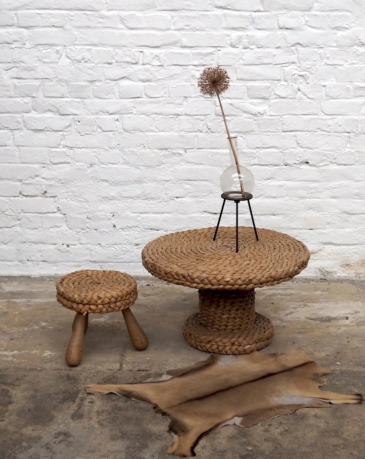 Léonie, l'ensemble table et tabouret en cordage N°445
