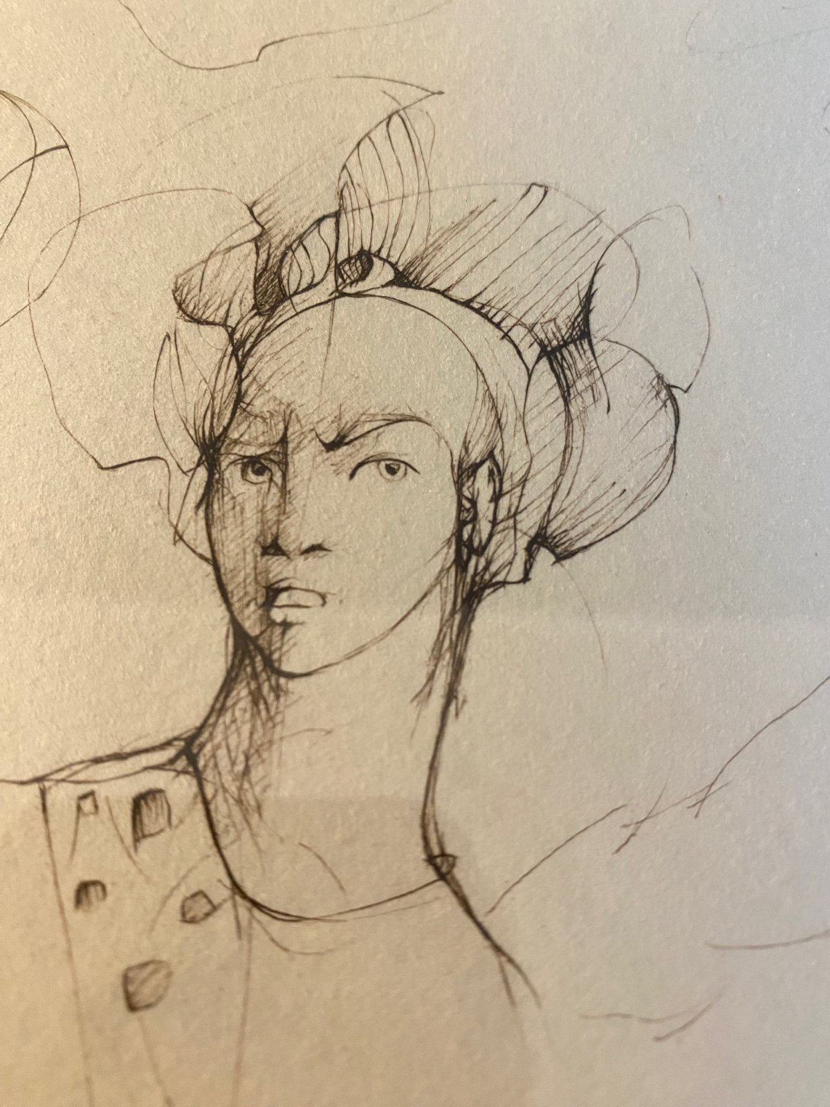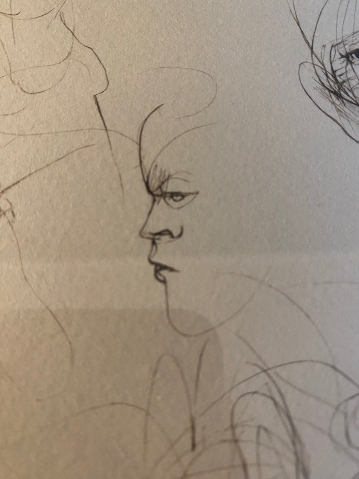 Léonor Fini(1907-1989) -Visages-Lithographie signée en bas à droite et justifiée 71/280. Elle mesure 48x37cm à vue. Très beau cadre en bois liserés dorés et 2 contours relief 61x73cm.