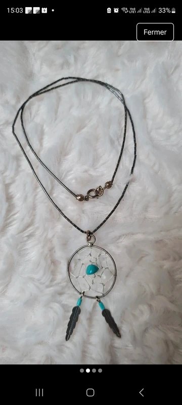 au dessus de 25€, merci de choisir comme transporteur si possible profitez-en pour acheter en lot 5 articles - 10% 10 articles - 20% 20 articles -30% bien regarder les photos pour voir les imperfections En argent 925 et turquoise dimensions largeur: 2,5 cm hauteur: 5,5 cm tour de cou : 42 cm#collier#cadeau#chic#collection#vintageHbijou#collierattrapereve#argent#pendentifamerindiens...