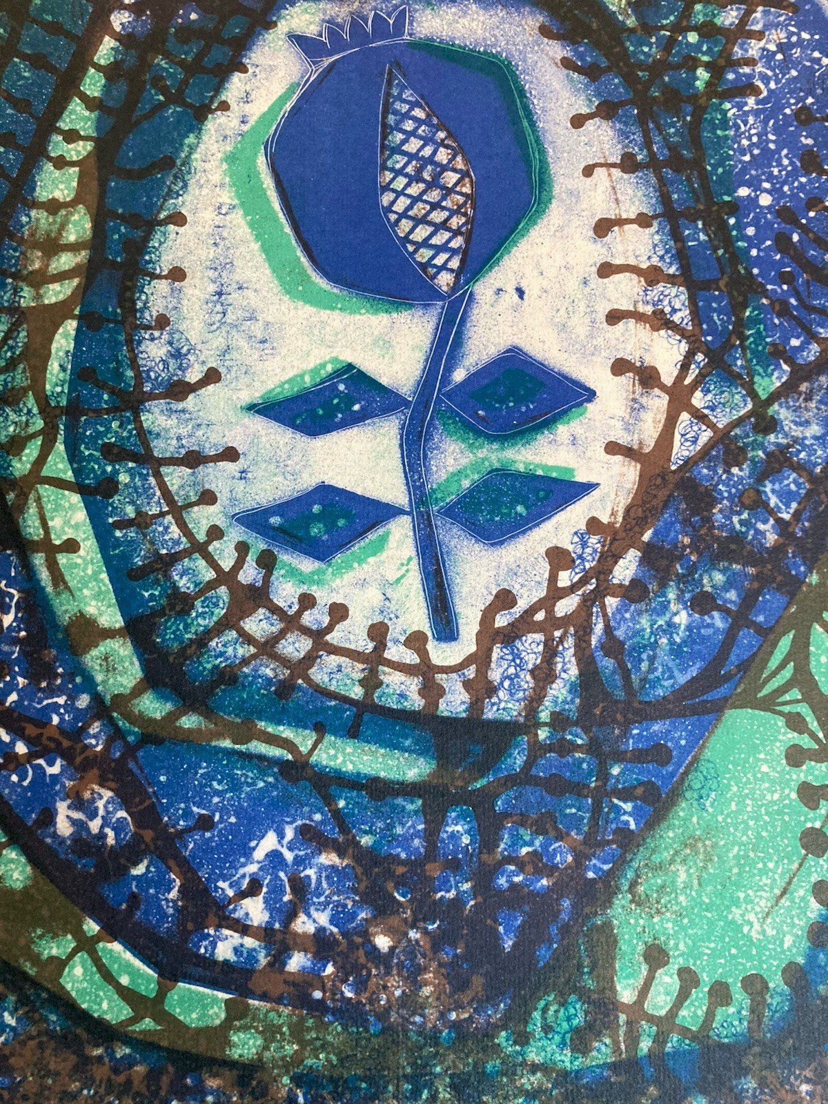 La gravure a été signé à la main Bon état général, voir photo, cette cartographie a été dédicacée à JEAN Dieuzaide Cette lithographie vient de la collection Jean Dieuzaide Biographie d’Antoni Cumella Serret Antoni Cumella Serret (Granollers, 31 août 1913 – Granollers, 25 janvier 1985) est un céramiste catalan de renommée internationale, reconnu comme l’un des grands rénovateurs de la céramique espagnole du XXᵉ siècle. Issu d’une famille d’artisans (son père était bijoutier et son beau-père potier), il découvre très tôt l’univers de l’argile. Formé à l’Escola del Treball de Barcelone, il développe dès la fin des années 1920 ses premières pièces céramiques. Très vite, il est influencé par le modernisme catalan, par l’architecture de Gaudí, mais aussi par les lignes épurées du pavillon de Mies van der Rohe lors de l’Exposition internationale de 1929. Ces références nourriront son goût pour l’expérimentation, la sobriété des formes et l’intégration de la céramique dans l’espace architectural. Dans les années 1930, il enseigne déjà la céramique au Grup Escolar Lluís Vives à Barcelone. La guerre civile espagnole interrompt sa trajectoire : mobilisé comme auxiliaire sanitaire, il connaît l’emprisonnement à la fin du conflit. Après ces épreuves, il reprend avec énergie son travail artistique, participant à des expositions en Espagne et à l’étranger. À partir des années 1950, Cumella se fait connaître au-delà des cercles spécialisés. Ses recherches sur les émaux, les textures et les formes lui valent plusieurs distinctions aux Triennales de Milan, où il obtient des médailles d’or. Son œuvre se déploie dans de grandes commandes publiques et privées : panneaux muraux, façades, ensembles décoratifs, tout en poursuivant une production plus intime de pièces de laboratoire où il explore sans cesse de nouveaux procédés. La période lithographique des années 1970 Si la céramique reste au cœur de sa carrière, Cumella ne s’est pas limité à ce seul médium. Dans les années 1970, il s’intéresse à la lithographie, un champ qui lui permet de transposer son langage plastique sur papier. Dans ces œuvres graphiques, il expérimente des jeux de matières, de rythmes et de contrastes rappelant les effets de ses émaux et de ses surfaces céramiques. Bien que cette production soit restée plus confidentielle que ses créations en argile, elle révèle son désir de traduire son univers formel dans un médium reproductible et d’explorer d’autres voies de diffusion artistique. Dernières années et reconnaissance Au cours des décennies 1970 et 1980, Cumella poursuit une carrière féconde, alternant travaux monumentaux et recherches plus expérimentales. Il reçoit de nombreuses distinctions : la Médaille d’or du FAD, le Prix national des arts plastiques (1980), et la Creu de Sant Jordi (1982), l’une des plus hautes distinctions culturelles de Catalogne. Il s’éteint en 1985 à Granollers, sa ville natale. Son œuvre, ancrée dans la tradition mais toujours tournée vers l’innovation, continue d’inspirer céramistes et artistes contemporains. Produits recommandés Provided by Belle Lithographie Jean Dieuzaide 1970 Abstrait abstraction Gravure Litho Art Voir le produit Très Belle Lithographie Gravure Signé Anthoni Cumella 1974 Abstrait abstraction Voir le produit Style:1970 Genre:Expressionnisme Caractéristiques:Sur Papier Thème:Abstrait Pays d'origine:France