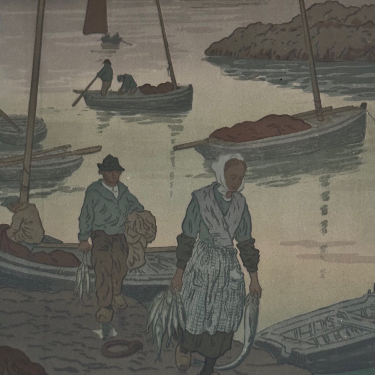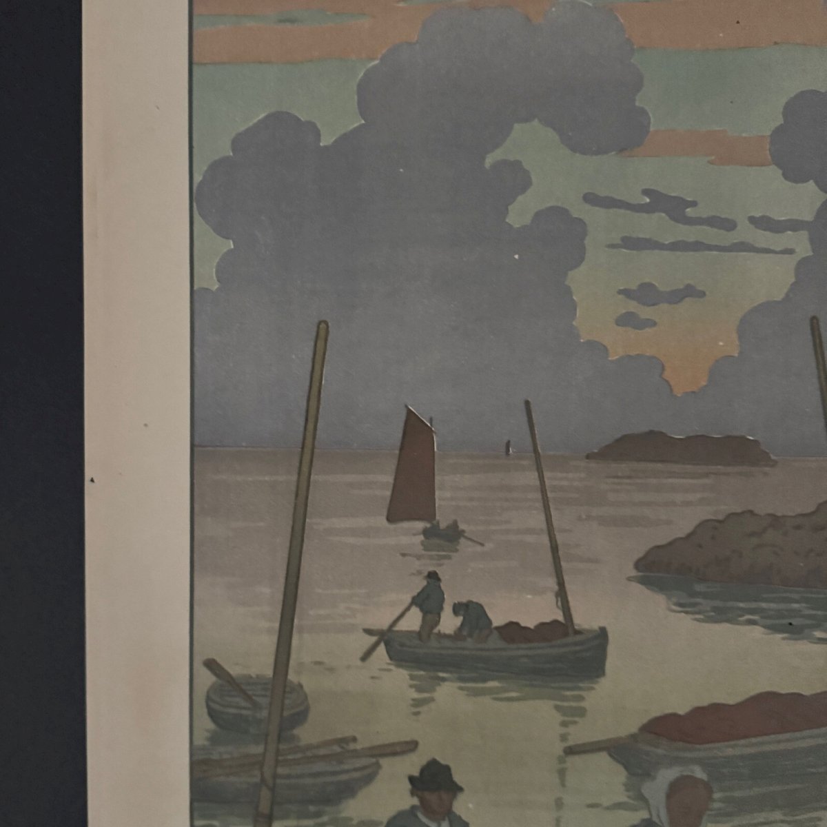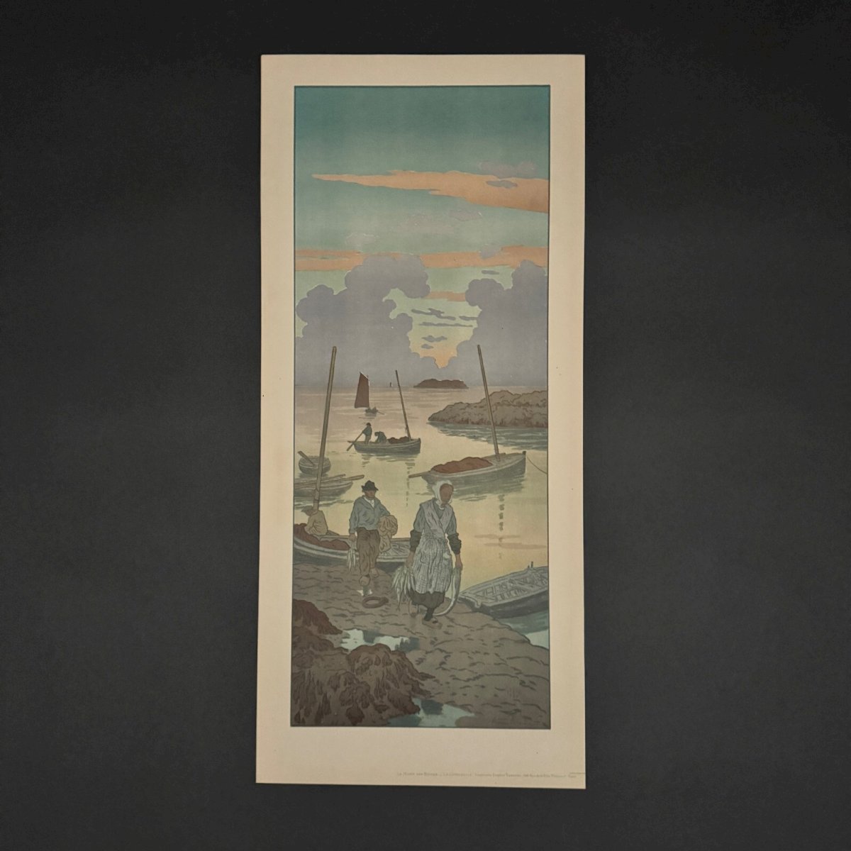 Lithographie par Henri Rivière La Féérie des Heures - Le Crépuscule A5578 Cette lithographie “La Féérie des Heures - Le Crépuscule” est signée Henri Rivière et porte un cachet au timbre rouge en bas à droite. L’œuvre est authentique et ancienne. Pour l’état, notons dans la marge un trou d'épingle, des traces de pliage, des petites taches et un trait d'encre. Sur la litho, nous signalons des petites taches brunes et blanches. La lithographie est très fraiche en couleur, une fois encadrée la plupart des défauts seront peu visibles. Vendue telle que présentée. Henri Rivière (1864-1951) est un artiste peintre, graveur et illustrateur français. Il commence sa carrière par le dessin puis par la gravure en taille douce et spécifiquement l’eau-forte en 1882. Parallèlement il entame une carrière de metteur en scène et scénographe, en 1886, du théâtre d’ombres au cabaret du Chat noir, spectacles qu’il améliore par la création de décors en couleurs, très novateurs. Il se consacre ensuite exclusivement à la peinture et à la gravure et s’impose dans l’histoire de l’eau-forte, de l’estampe, de la gravure sur bois, de la lithographie et de l’aquarelle (il a peint environ un millier d’aquarelles). Nos nombreuses photos vous permettent d’apprécier la qualité de cette lithographie. Pour l’état, merci de bien détailler les photos. N’hésitez pas à zoomer. Les photos font partie intégrante de la description. Dimensions : Hauteur : 67,9 cm Largeur : 30,4 cm Œuvre Hauteur : 60 cm Largeur : 24 cm PAM : QKG-2277559 S : UB51H48Q Je reste à votre disposition pour toute question. Authenticité:Inconnu Type:Lithographie Support:Sur papier Hauteur:67,9 cm Caractéristiques:Signée Thème:Paysage Largeur:30,4 cm Pays d'origine:France