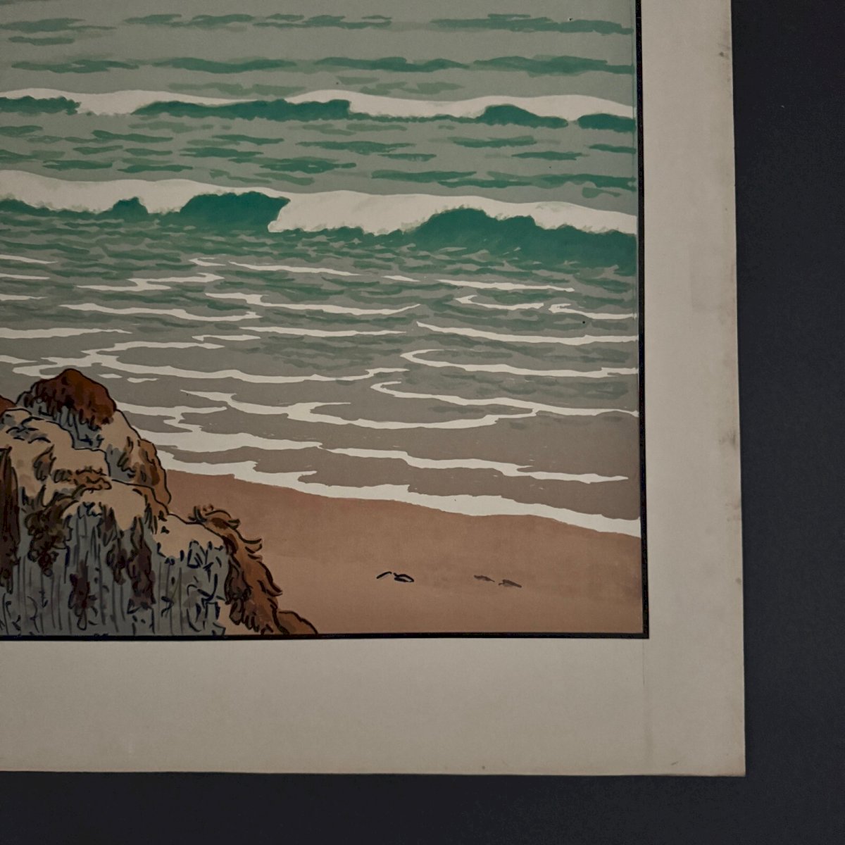 Lithographie par Henri Rivière Les Aspects de la Nature - La Mer A5599 Cette lithographie “Les Aspects de la Nature - La Mer” est signée Henri Rivière en bas à gauche. L’œuvre est authentique et ancienne. Pour l’état, notons dans la marge des petites salissures et des traits d'encre, d Sur la litho, nous signalons des petites taches par endroits. La lithographie est très fraiche en couleur, une fois encadrée la plupart des défauts seront peu visibles. Vendue telle que présentée. Henri Rivière (1864-1951) est un artiste peintre, graveur et illustrateur français. Il commence sa carrière par le dessin puis par la gravure en taille douce et spécifiquement l’eau-forte en 1882. Parallèlement il entame une carrière de metteur en scène et scénographe, en 1886, du théâtre d’ombres au cabaret du Chat noir, spectacles qu’il améliore par la création de décors en couleurs, très novateurs. Il se consacre ensuite exclusivement à la peinture et à la gravure et s’impose dans l’histoire de l’eau-forte, de l’estampe, de la gravure sur bois, de la lithographie et de l’aquarelle (il a peint environ un millier d’aquarelles). Nos nombreuses photos vous permettent d’apprécier la qualité de cette lithographie. Pour l’état, merci de bien détailler les photos. N’hésitez pas à zoomer. Les photos font partie intégrante de la description. Dimensions : Hauteur : 64,8 cm Largeur : 90,8 cm Œuvre Hauteur : 54,5 cm Largeur : 83,3 cm P : 1670352 S : 3YSWB75F Je reste à votre disposition pour toute question. Authenticité:Inconnu Type:Lithographie Support:Sur papier Hauteur:64,8 cm Caractéristiques:Signée Thème:Paysage Largeur:90,8 cm Pays d'origine:France métropolitaine