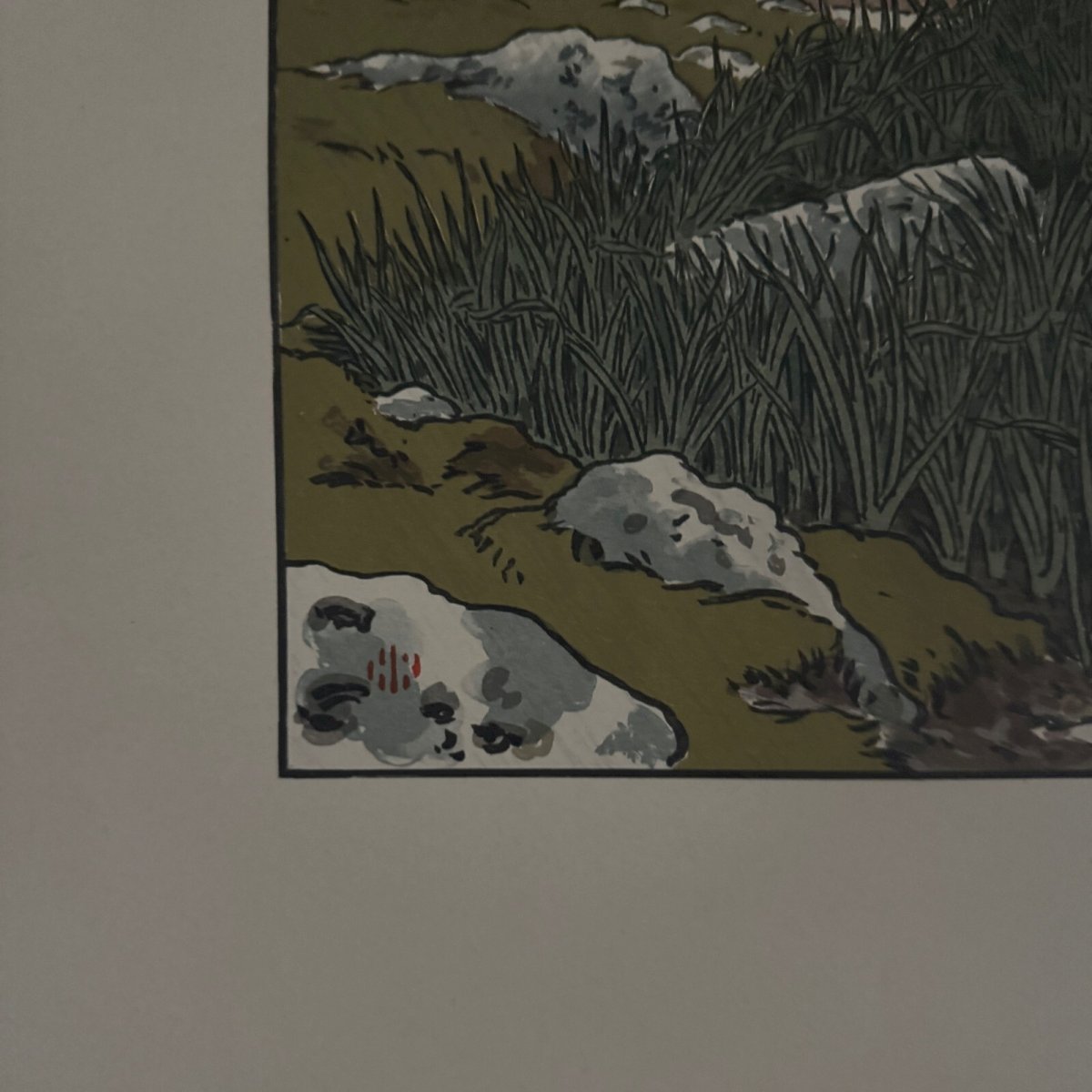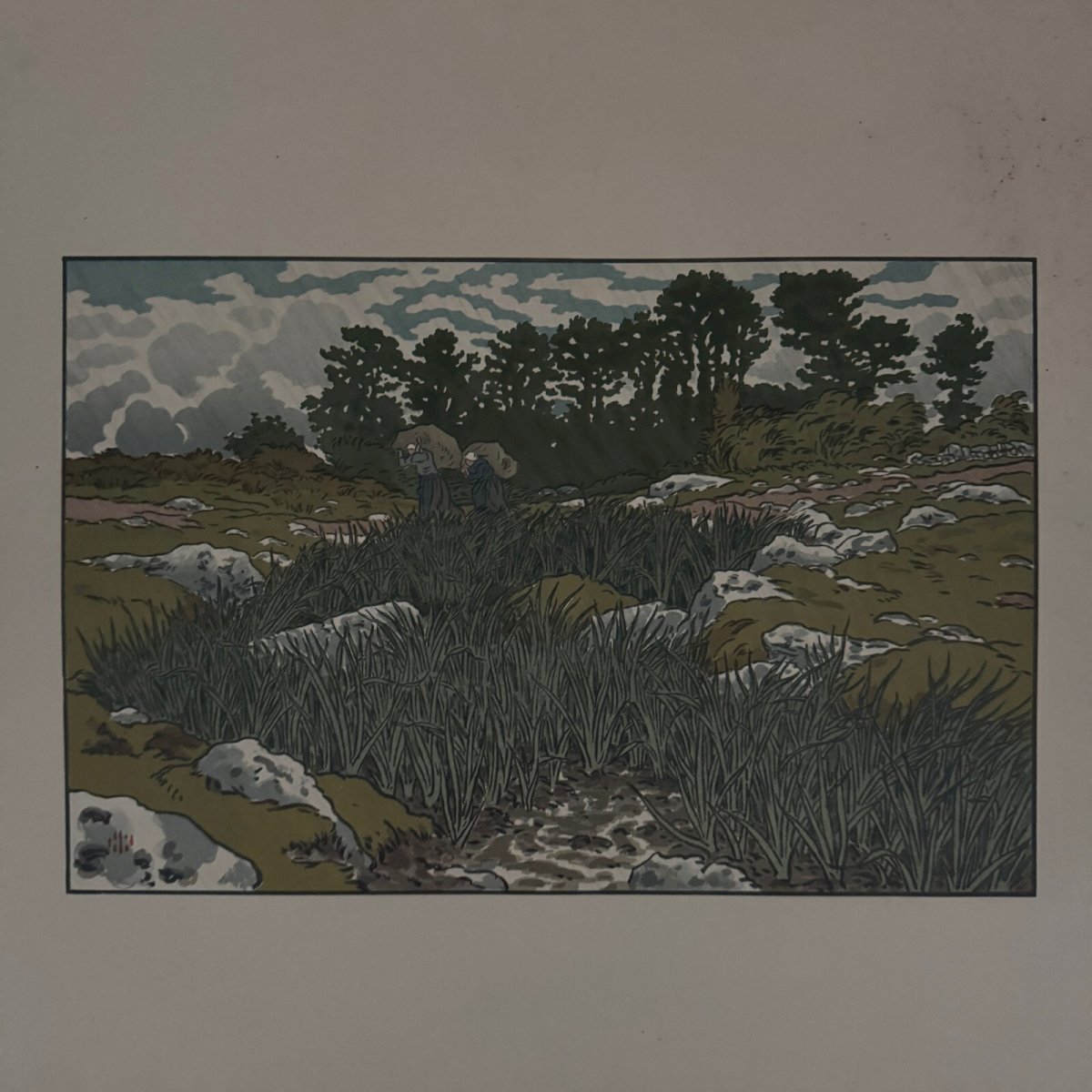 Lithographie par Henri Rivière Le Beau Pays de Bretagne - Ruisseau à Lopérec A5584 Cette lithographie “Le Beau Pays de Bretagne - Ruisseau à Lopérec” porte un cachet au timbre rouge en bas à gauche. L’œuvre est authentique et ancienne. Pour l’état, notons dans la marge des petites taches et des salissures, des petites déchirures (de 0,2 cm à 1 cm), des marques de pliage. Sur la litho, nous signalons des petites taches. La lithographie est très fraiche en couleur, une fois encadrée la plupart des défauts seront peu visibles. Vendue telle que présentée. Henri Rivière (1864-1951) est un artiste peintre, graveur et illustrateur français. Il commence sa carrière par le dessin puis par la gravure en taille douce et spécifiquement l’eau-forte en 1882. Parallèlement il entame une carrière de metteur en scène et scénographe, en 1886, du théâtre d’ombres au cabaret du Chat noir, spectacles qu’il améliore par la création de décors en couleurs, très novateurs. Il se consacre ensuite exclusivement à la peinture et à la gravure et s’impose dans l’histoire de l’eau-forte, de l’estampe, de la gravure sur bois, de la lithographie et de l’aquarelle (il a peint environ un millier d’aquarelles). Nos nombreuses photos vous permettent d’apprécier la qualité de cette lithographie. Pour l’état, merci de bien détailler les photos. N’hésitez pas à zoomer. Les photos font partie intégrante de la description. Dimensions : Hauteur : 45,4 cm Largeur : 56,5 cm Œuvre Hauteur : 23,2 cm Largeur : 35,2 cm S : T3RWRGHW Je reste à votre disposition pour toute question. Authenticité:Inconnu Type:Lithographie Support:Sur papier Hauteur:45,4 cm Caractéristiques:Signée Thème:Paysage Largeur:56,5 cm Pays d'origine:France