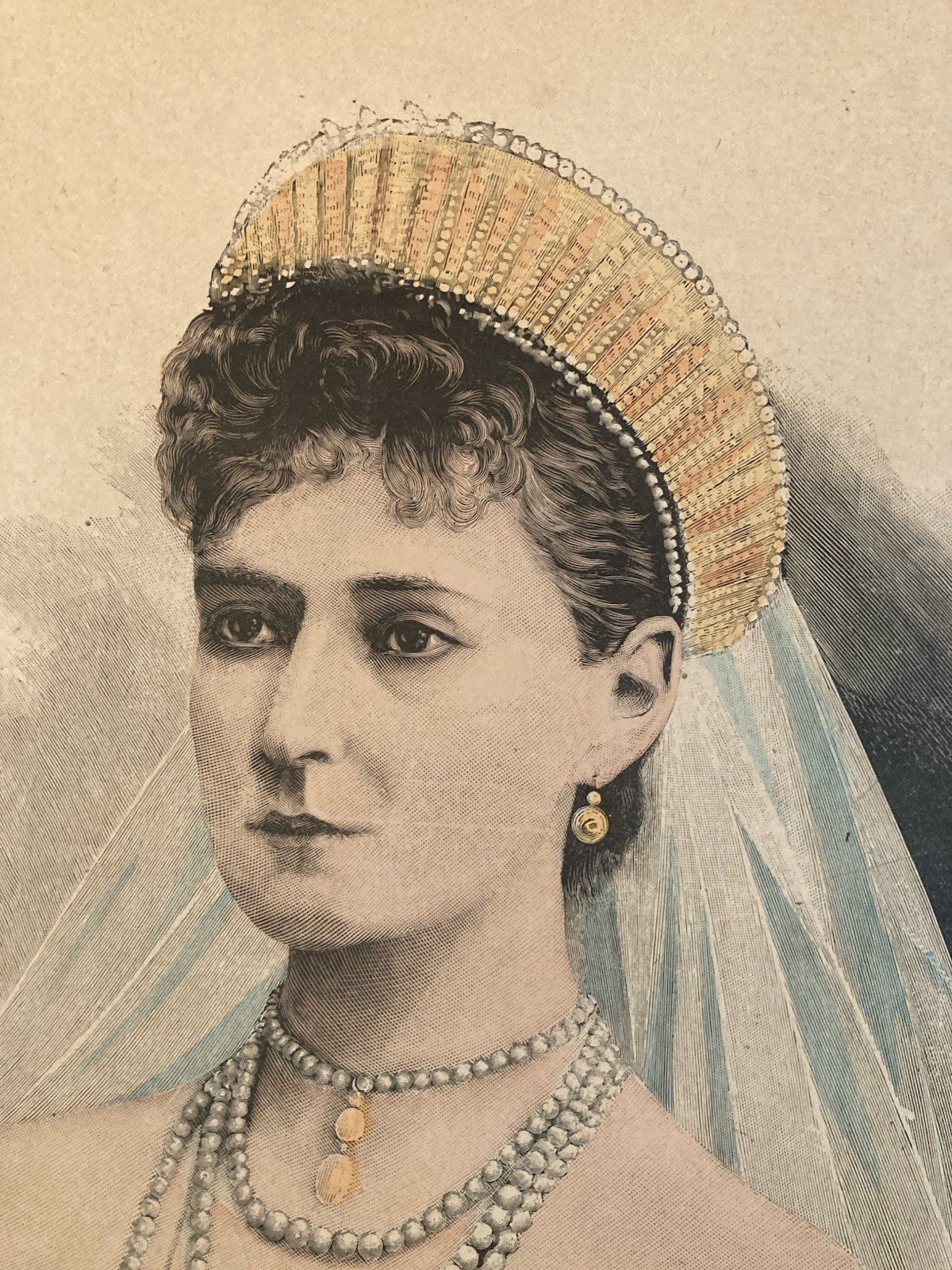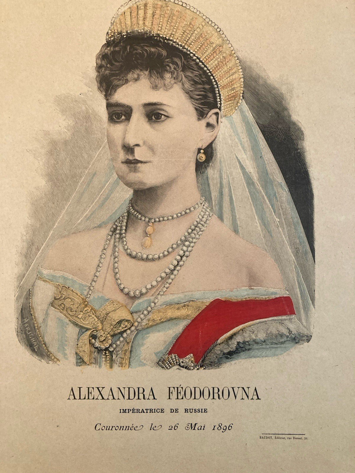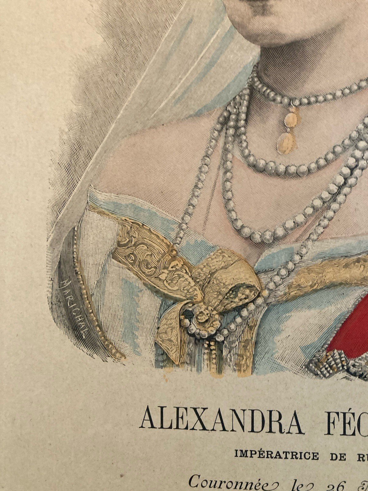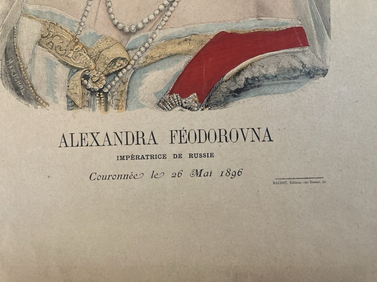 Lithographie Portrait TSARINE ALEKSANDRA FEDOROVNA 1900 Estampe Russie Etching
