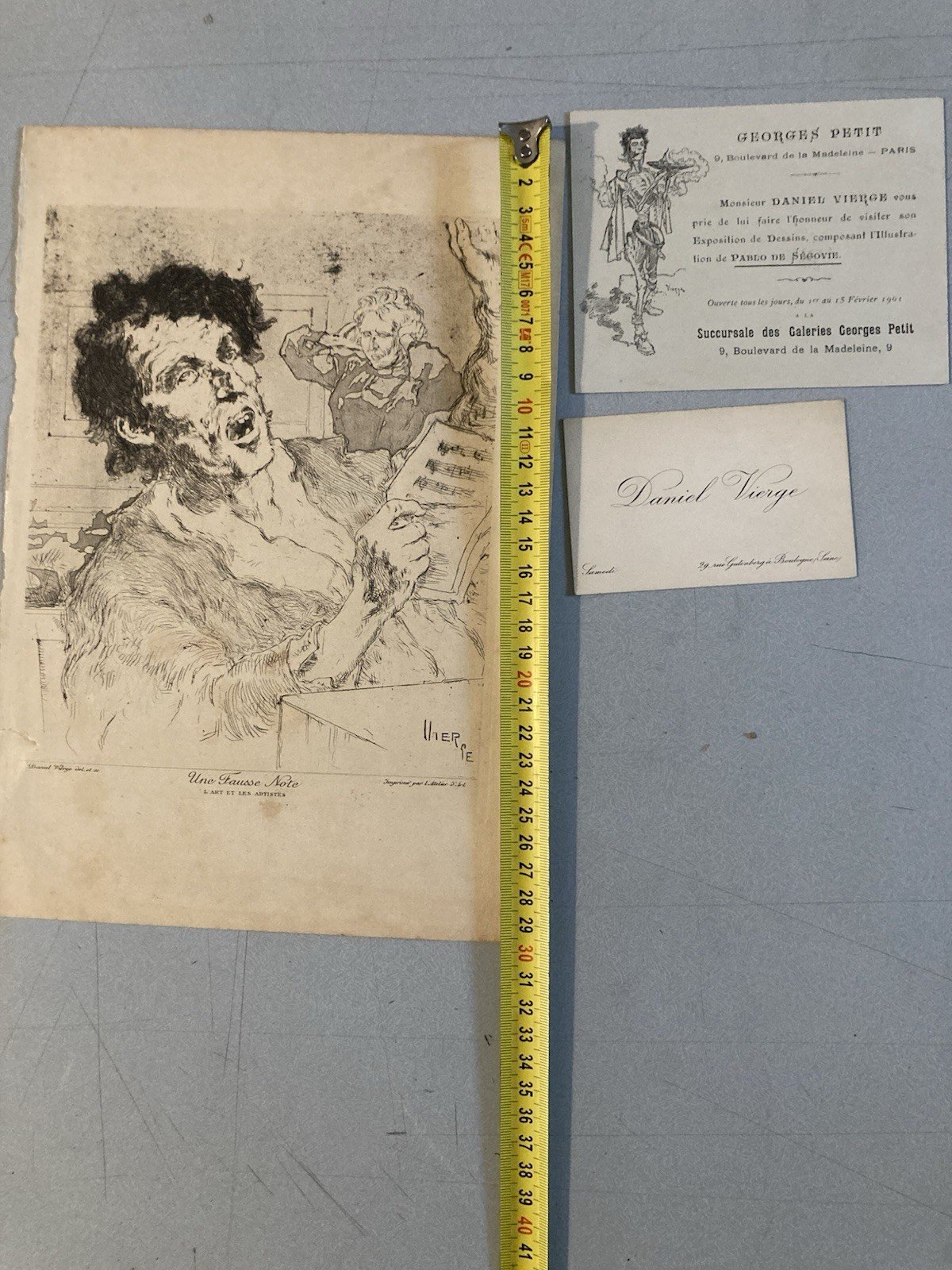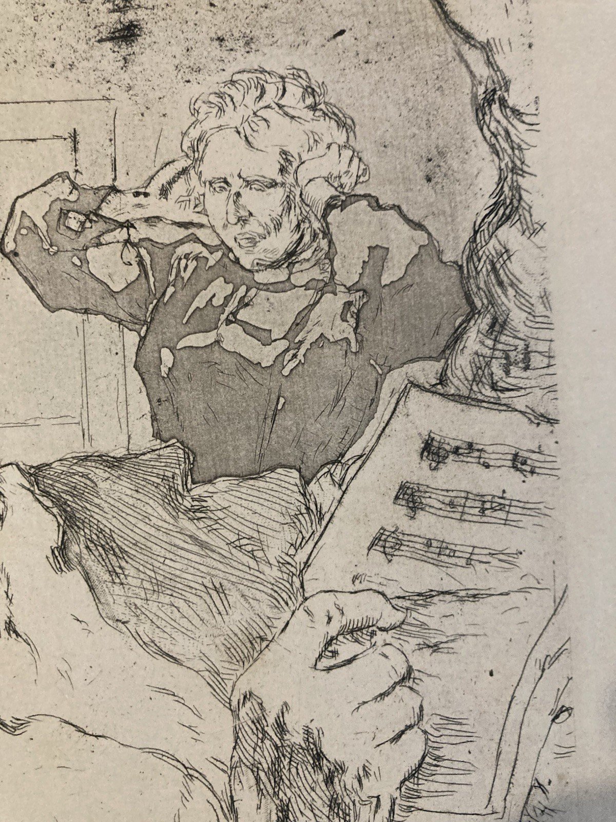 Lithographie signée Daniel Vierge Gravure Estampe Art Ancien Musique Notes