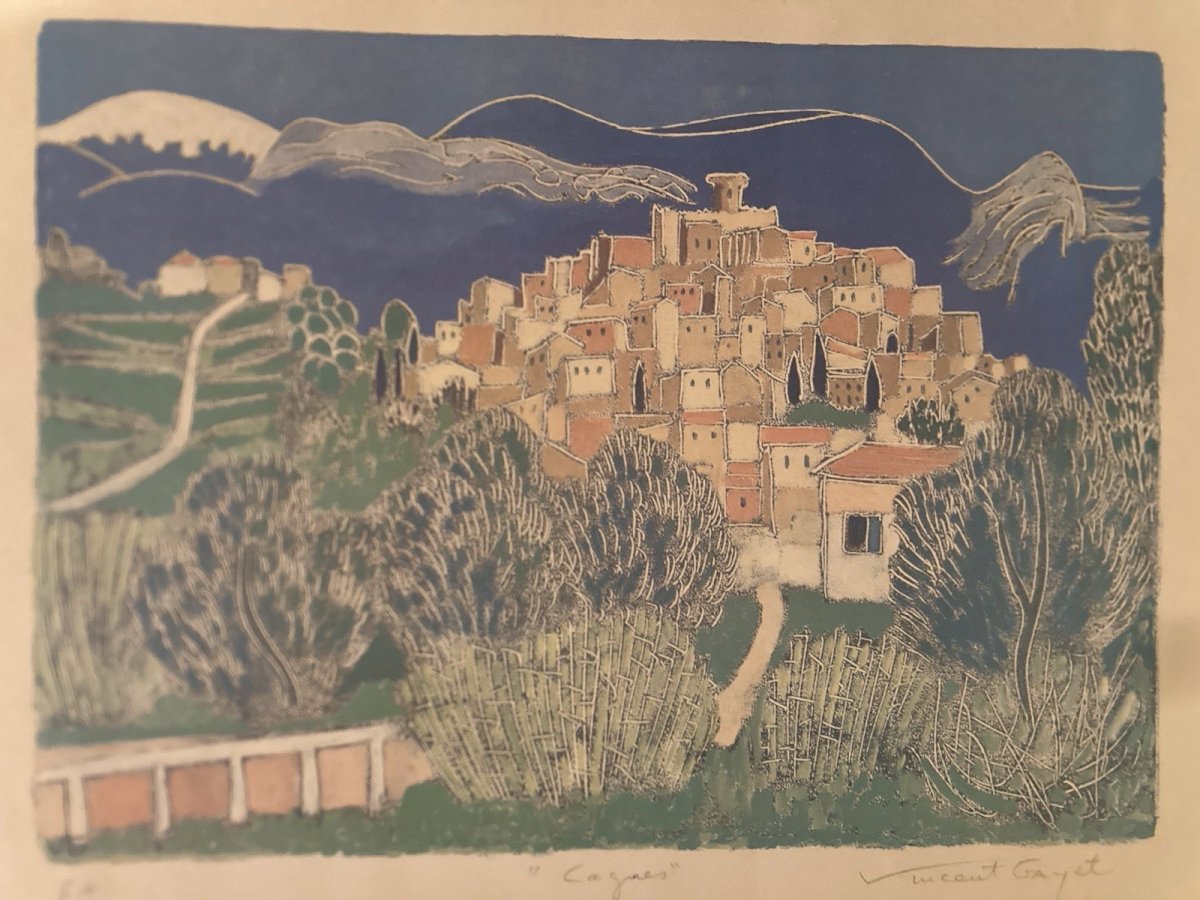 Belle lithographie Epreuve d 'artiste  de Vincent Gayet représentant une vue de "Cagnes" . dim feuille 50 x 40 cm litho 43 x 32 cm  bon état  Regardez les photos ci-dessus qui auront également valeur de descriptif. Emballage soigné et sécurisé avec possibilité d’envoi par la poste à sélectionner lors de votre achat pour le calcul des frais de port. (sinon envoi Mondial Relay classique) merci à tous et bonne chine dans ma boutique. renvoi accepté  dans 1 délai de 14 jours à partir de la réception, retour dans son emballage d'origine, dans son état initial,pas de remboursement pour les objets retournés cassés ou perdus par le transporteur,retour à la charge de l'acheteur . Type:Lithographie Période:XXème et contemporain Pays d'origine:France Caractéristiques:Signée Thème:Paysage