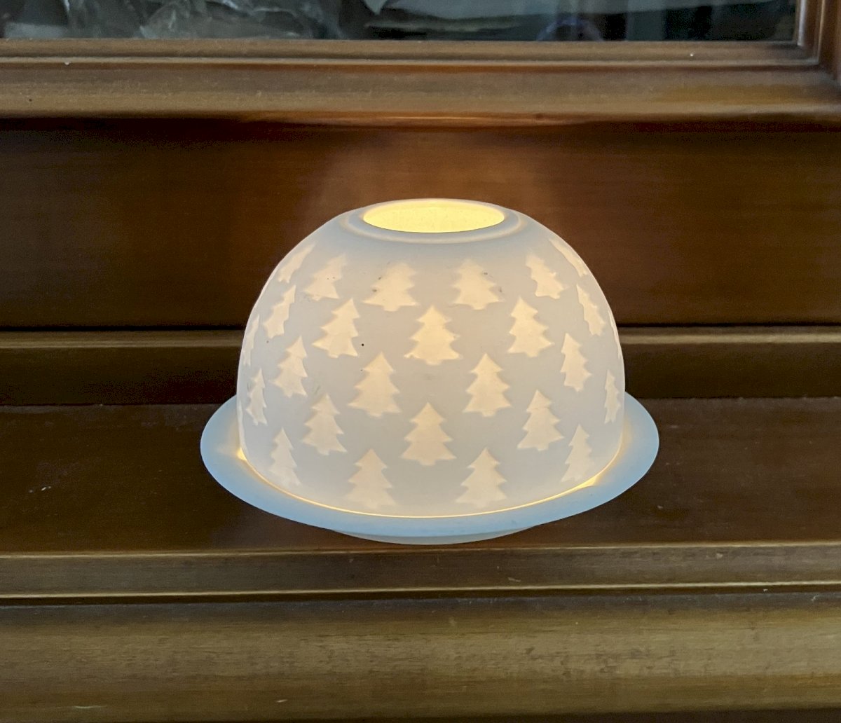 Lithophanie photophore - Sapins - Noel - porcelaine biscuit Bernardaud?