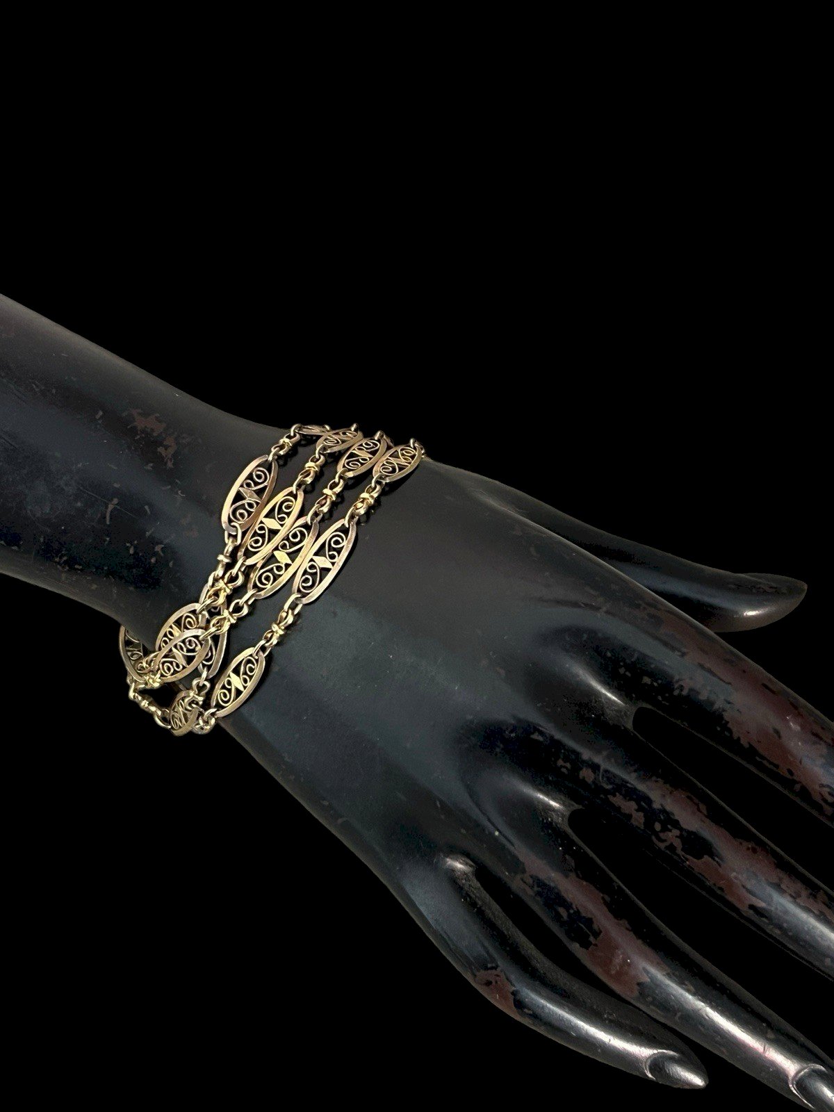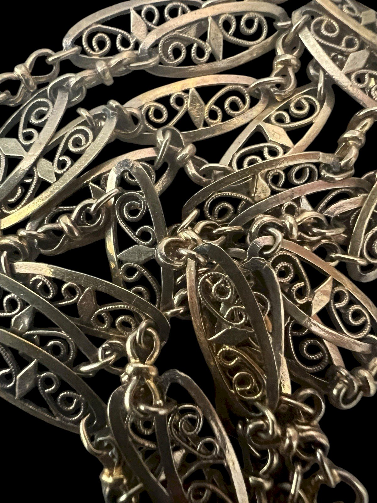 Long collier sautoir Maille Olive Argent /VermeilPoinçonné Ancien Vintage 1900