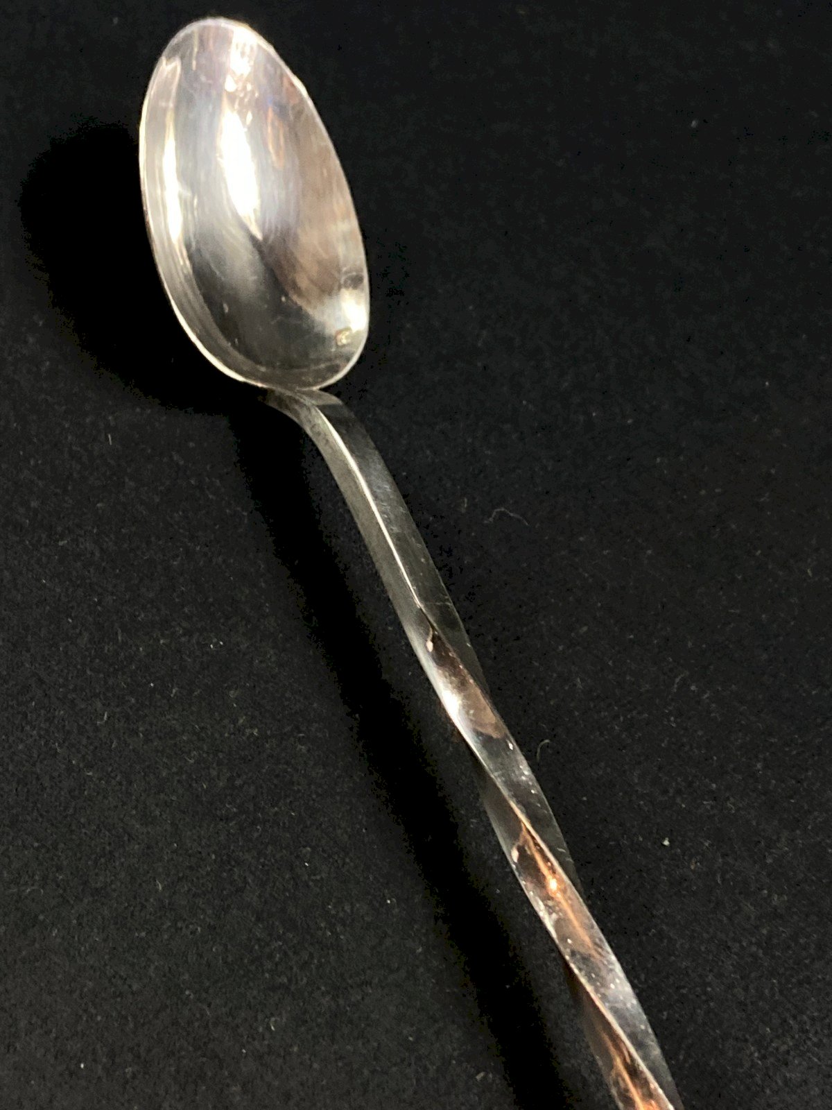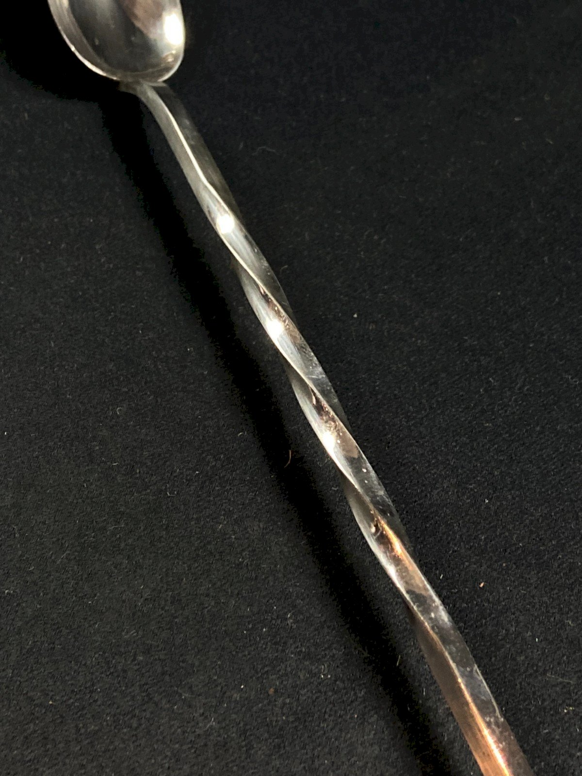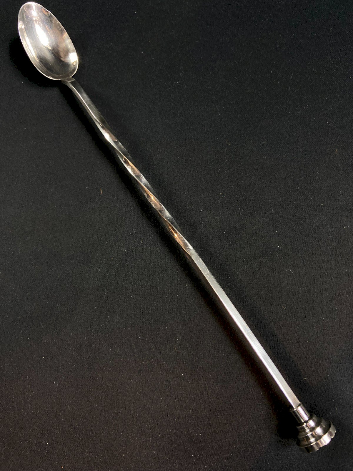 Longue cuillère à cocktail en métal argenté à décor torsadé
