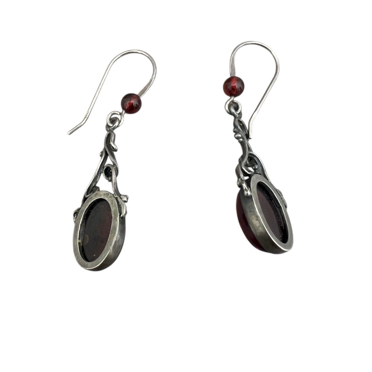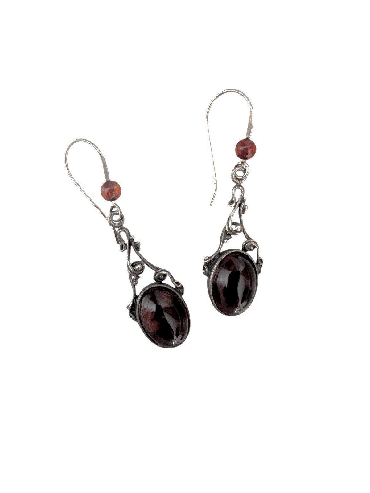 Longue paire de boucles d’oreilles argent massif Ambre style art nouveau vintage
