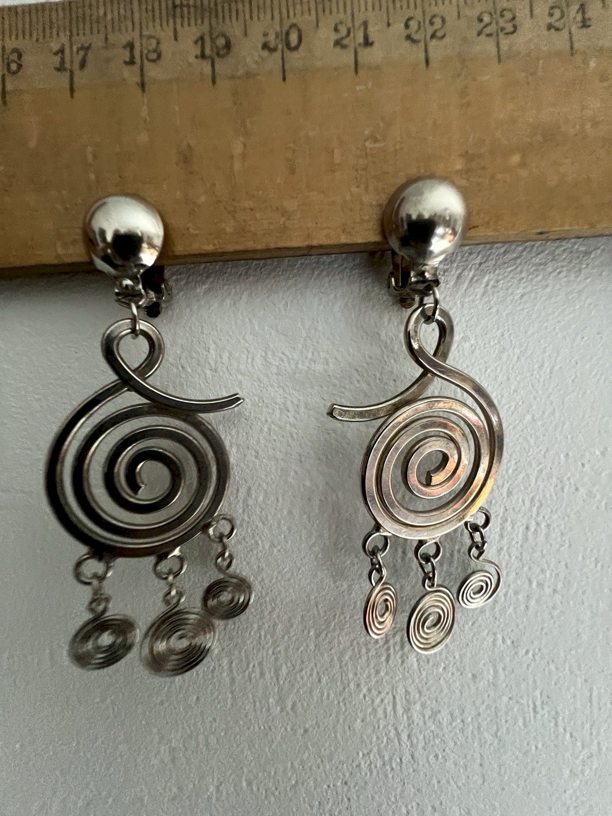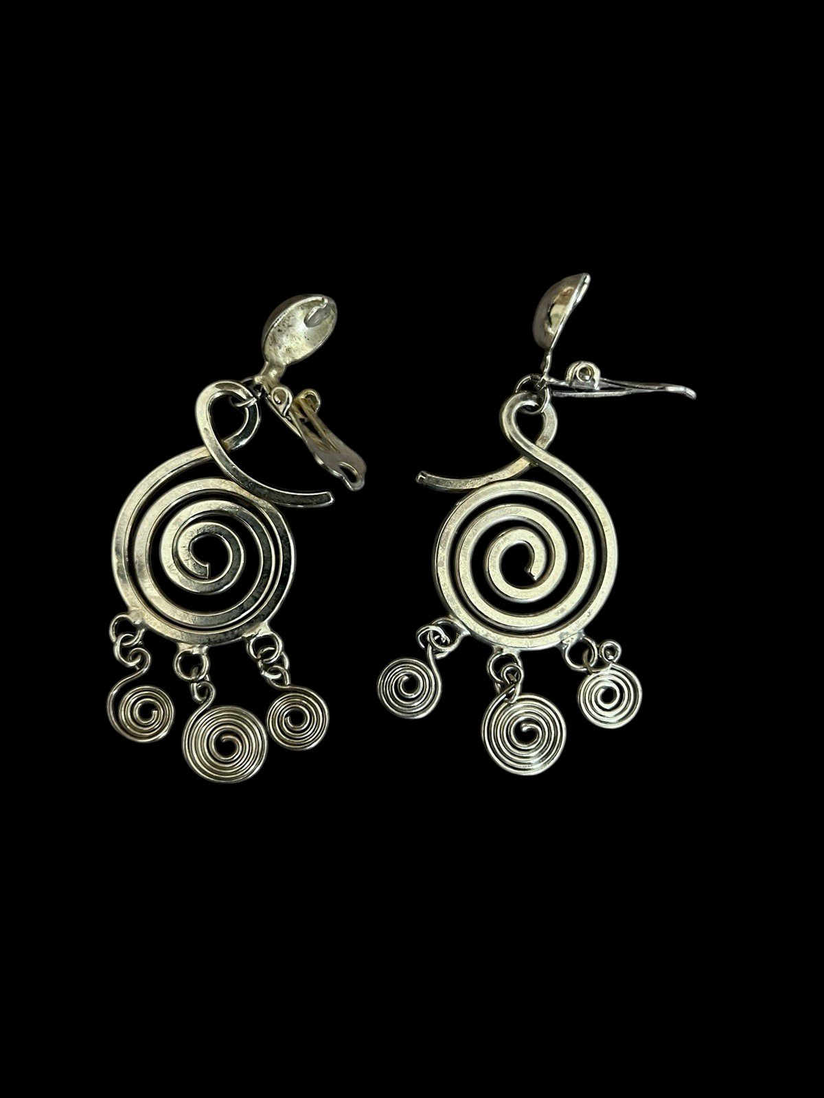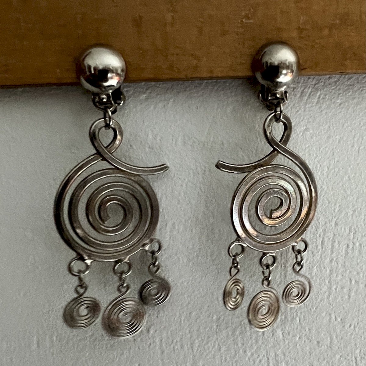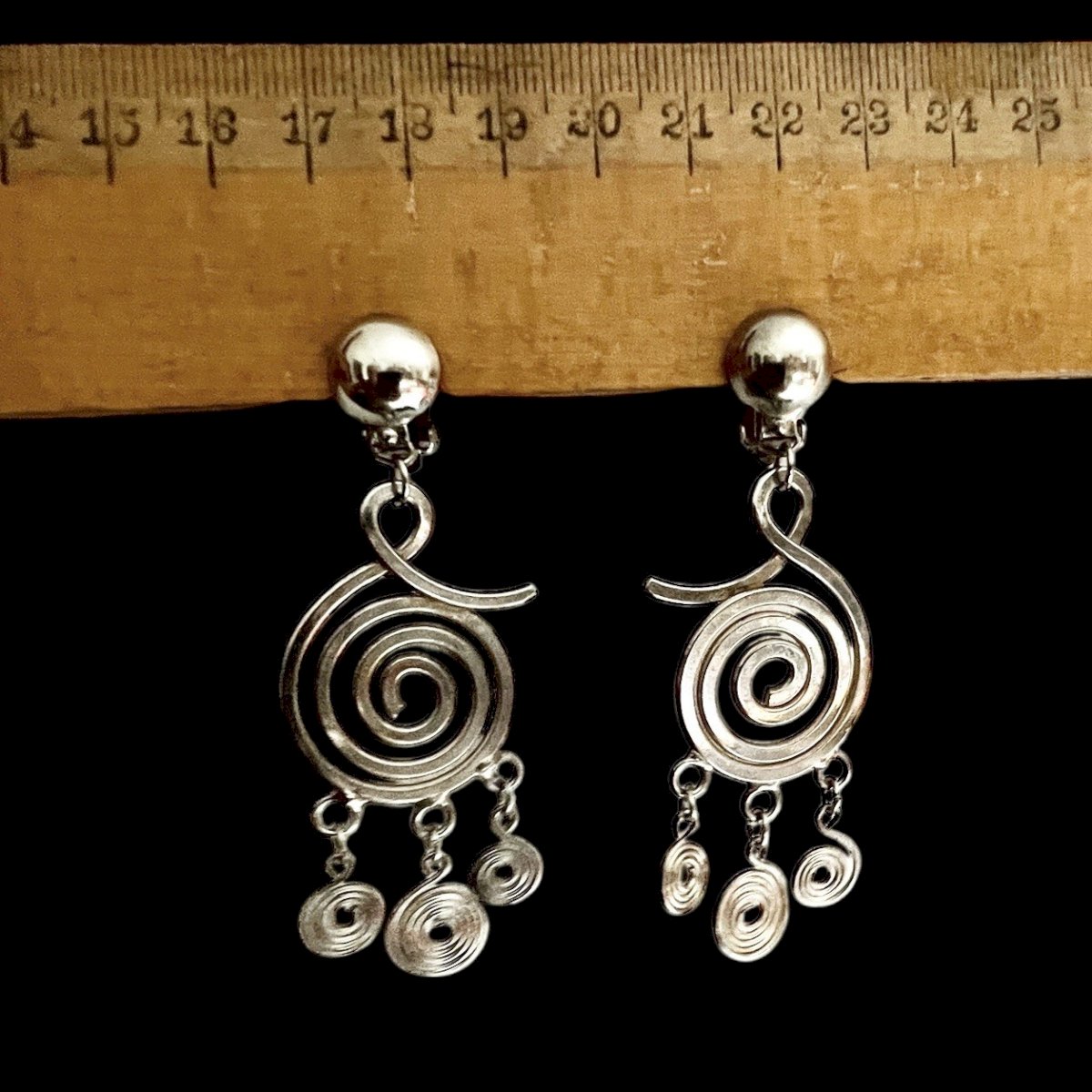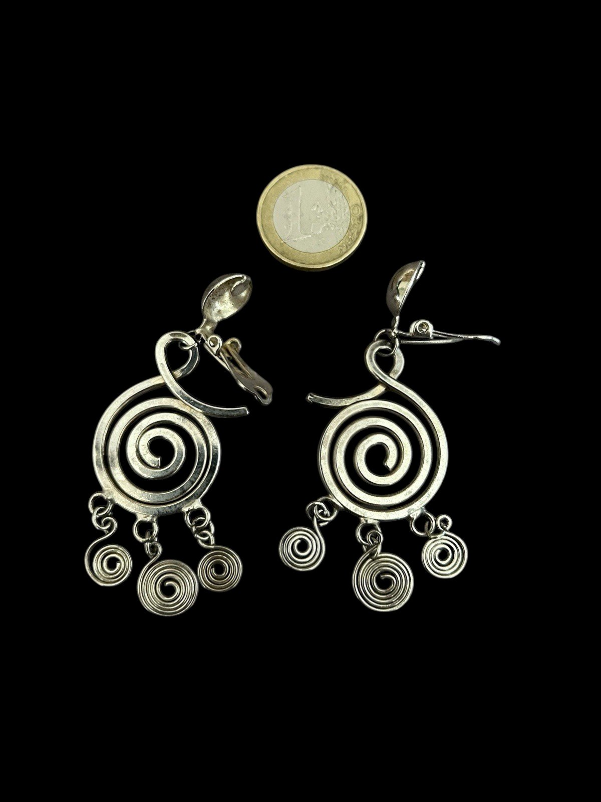 Longues Boucles d’oreille clip Chrome vers 1970 vintage ancienne tourbillon