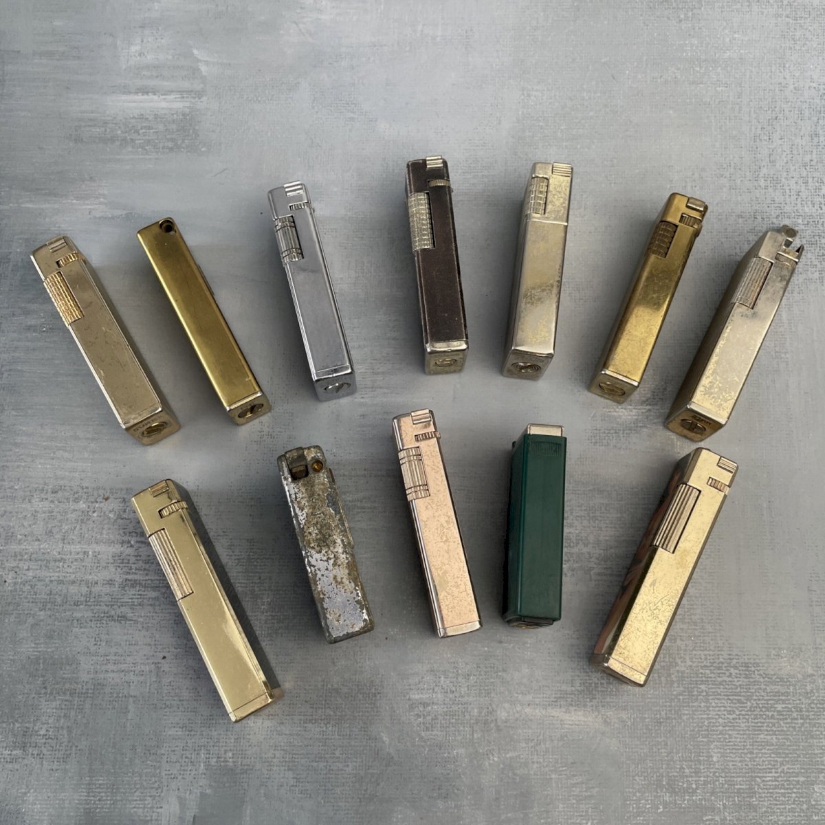 Lot 12 briquet ancien à restaurer Sopak Sunex Star Zilon Lynx Tiger Kingstar etc Old lighter to restore Poids ~ 0.6 kg Vendu en l'état, non testée, traces du temps, à restaurer, voir photos Pensez à grouper vos achats pour réduire les frais de port ! État:OccasionObjet ayant été utilisé. les éventuelles imperfections. Matière:Métal