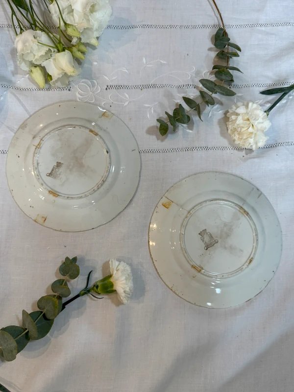 Chaque assiette présente un décor différent, ce qui permet aussi de les utiliser dépareillées, sur une belle table ou en décoration murale.