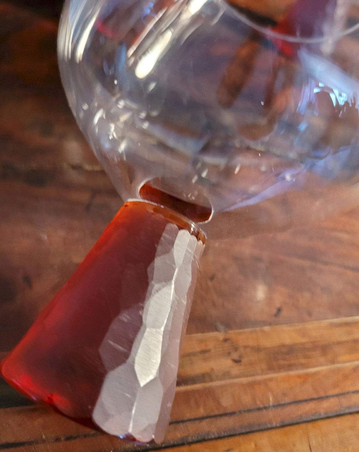 Lot 5 verres à pied Grand Marnier pied rouge à facette.