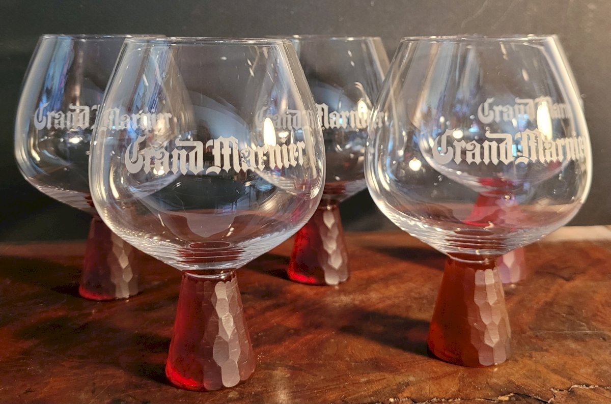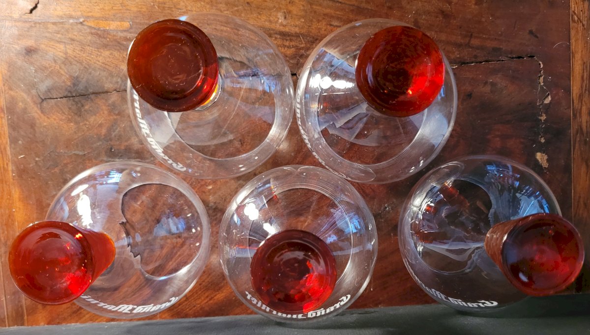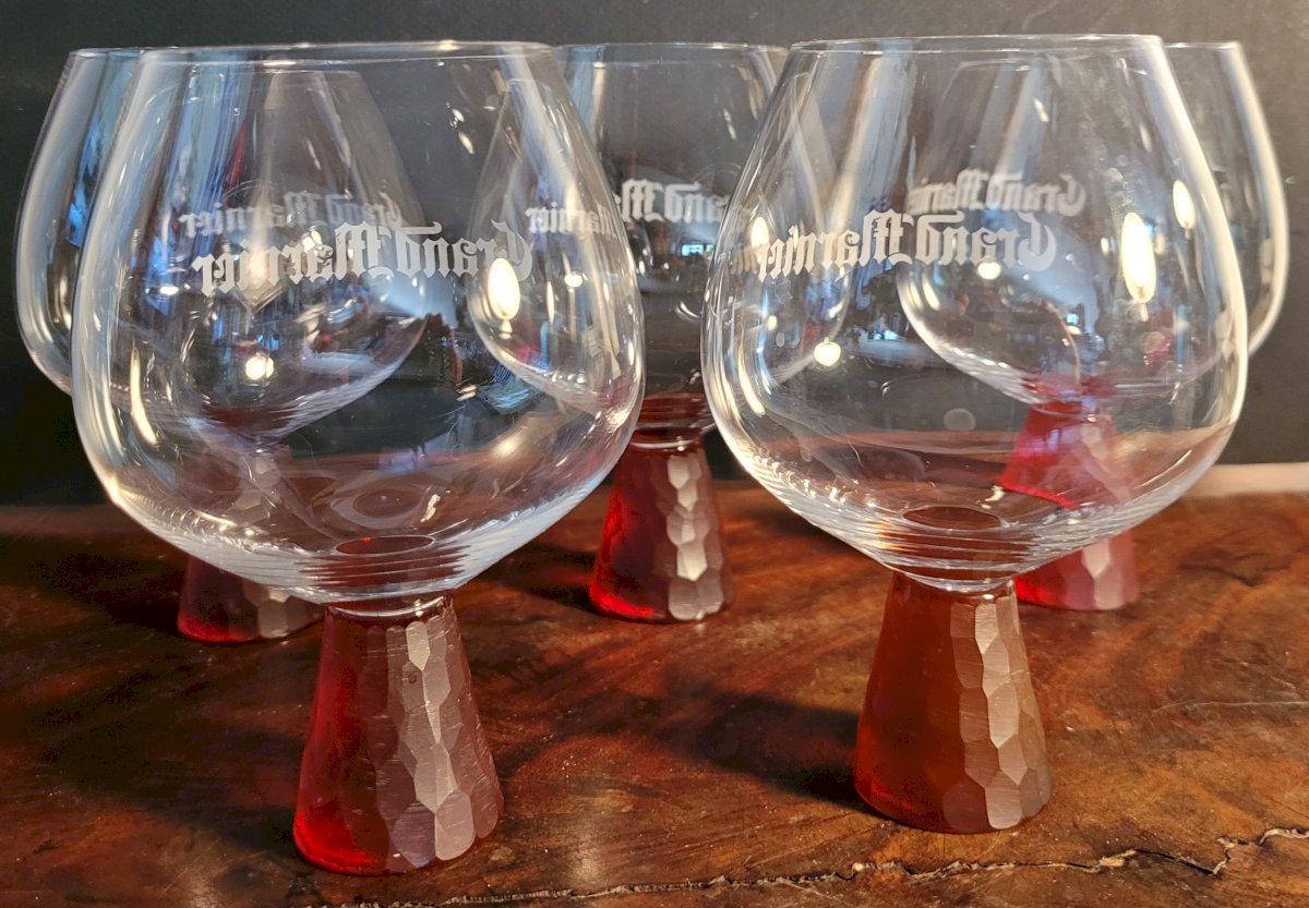 Lot 5 verres à pied GRAND MARNIER vintage pied rouge