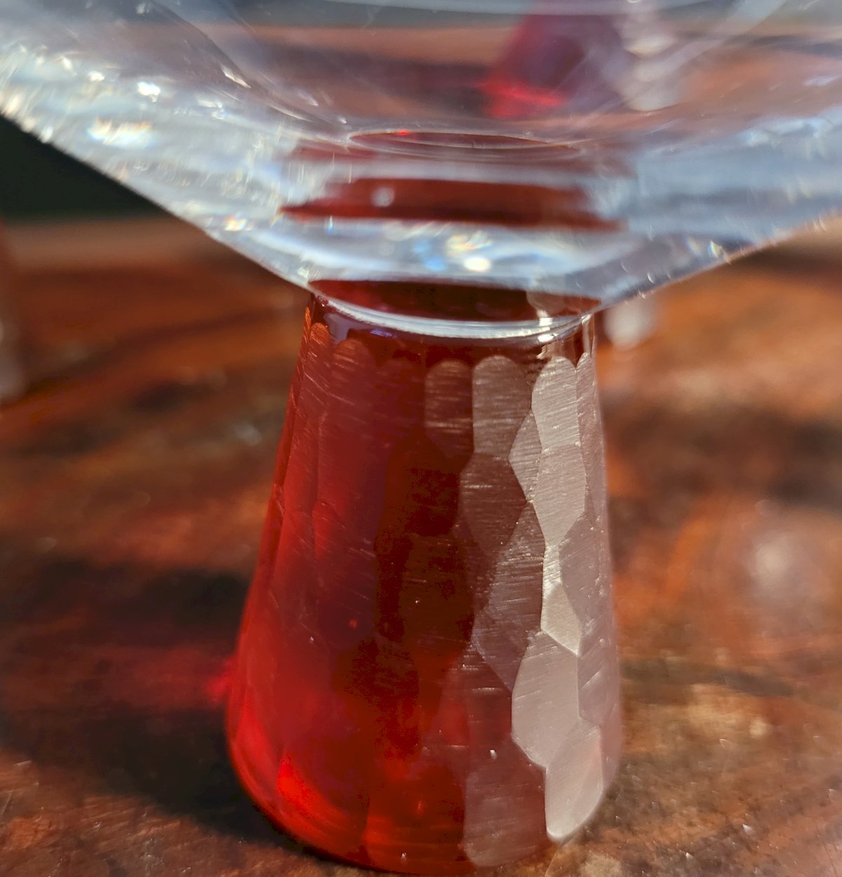 Lot 5 verres à pied Grand Marnier pied rouge à facette. Rouge/Transparent