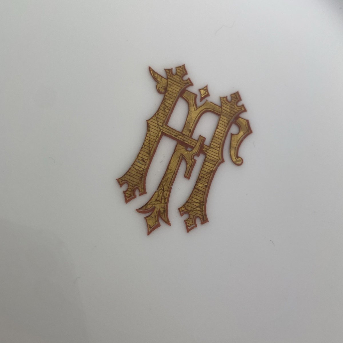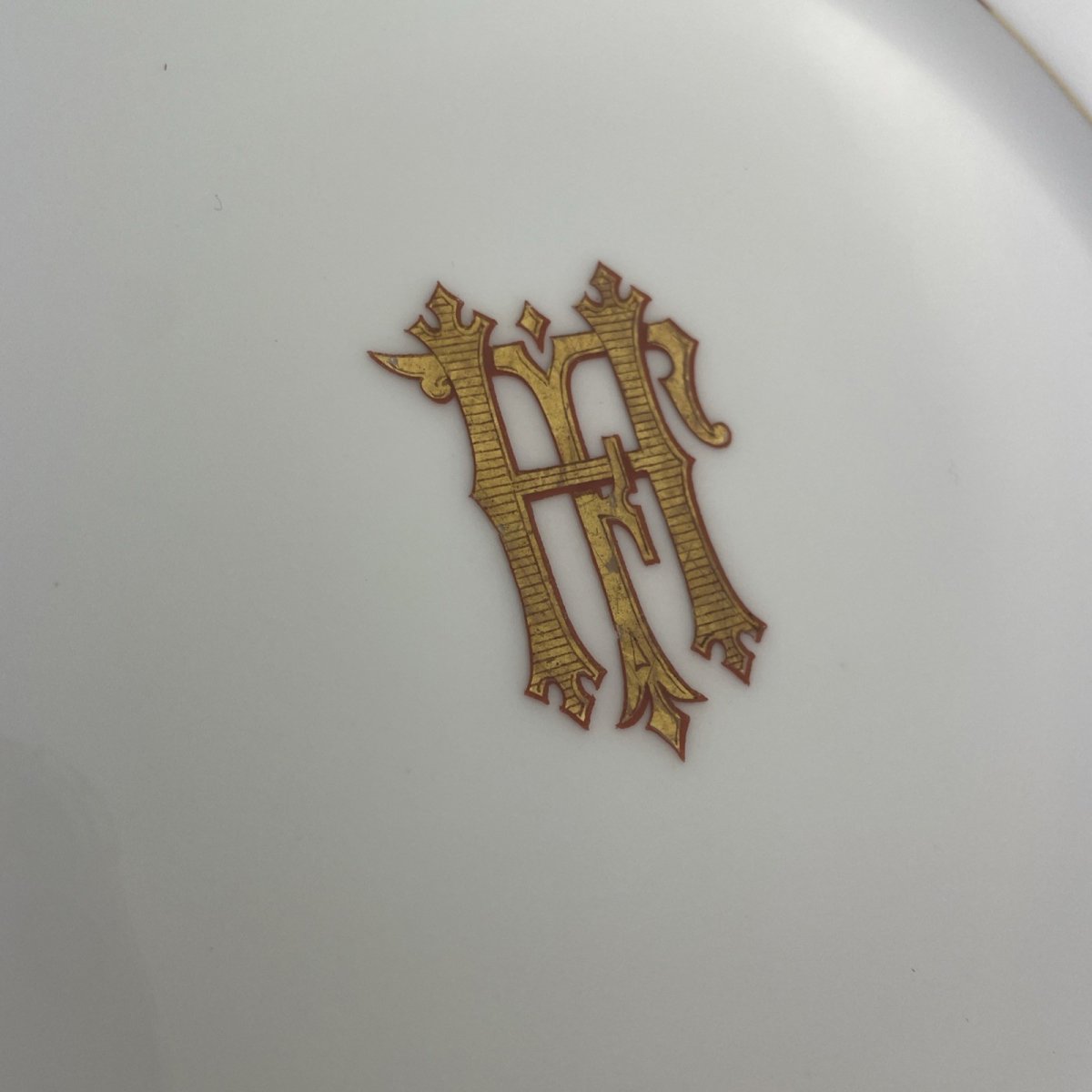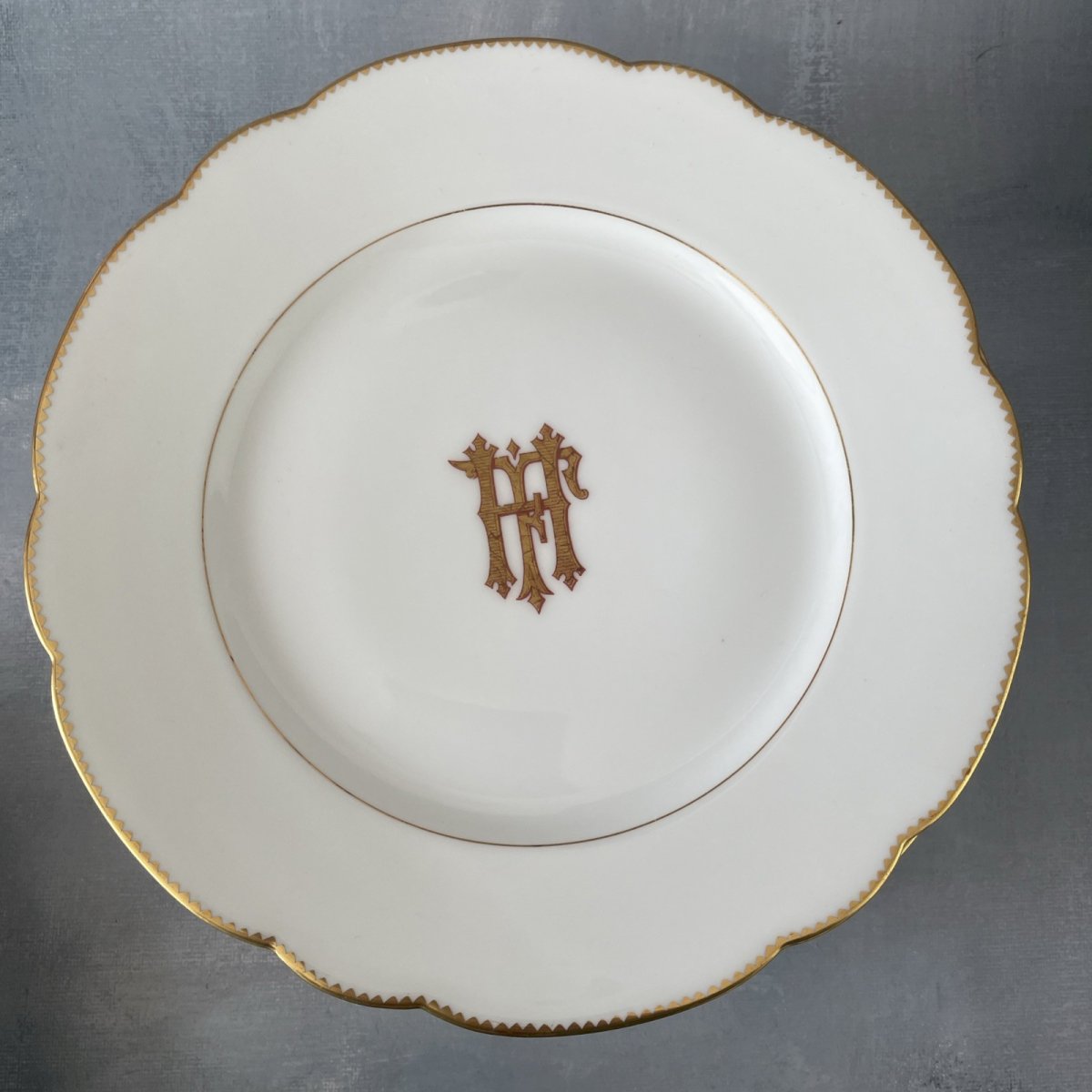 Lot 6 assiettes plates + 6 à dessert monogramme FH HF porcelaine Emile Bourgeois