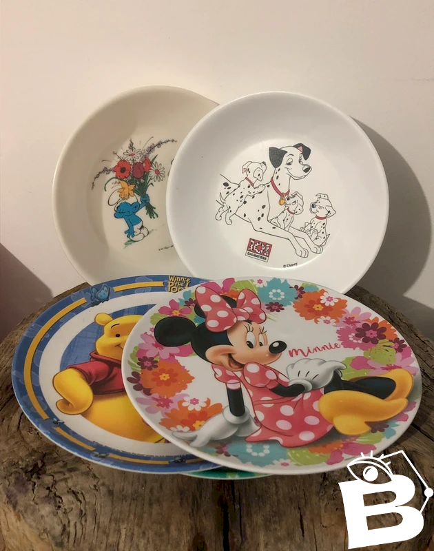 Lot de 5 assiettes enfants en plastique usagées mais non cassées , voir les photos