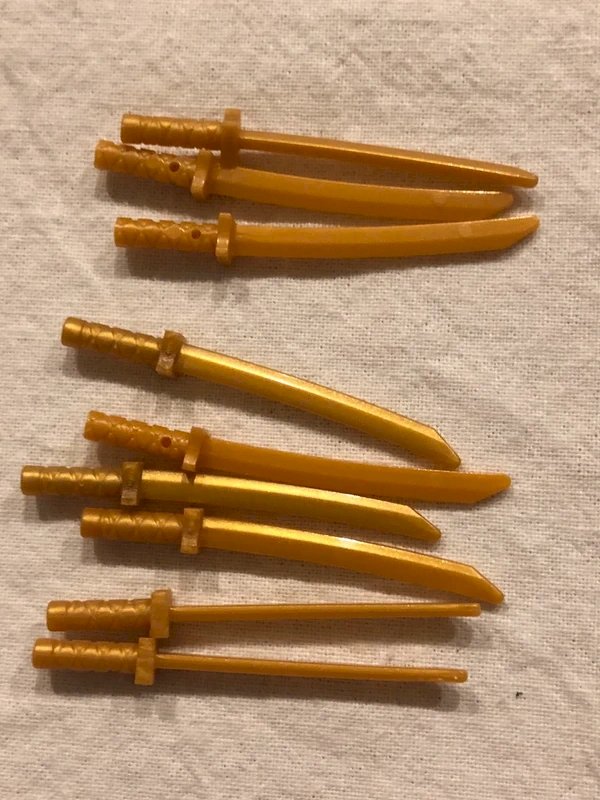 Lot d épées Lego argentées/dorées/colorées en excellent état