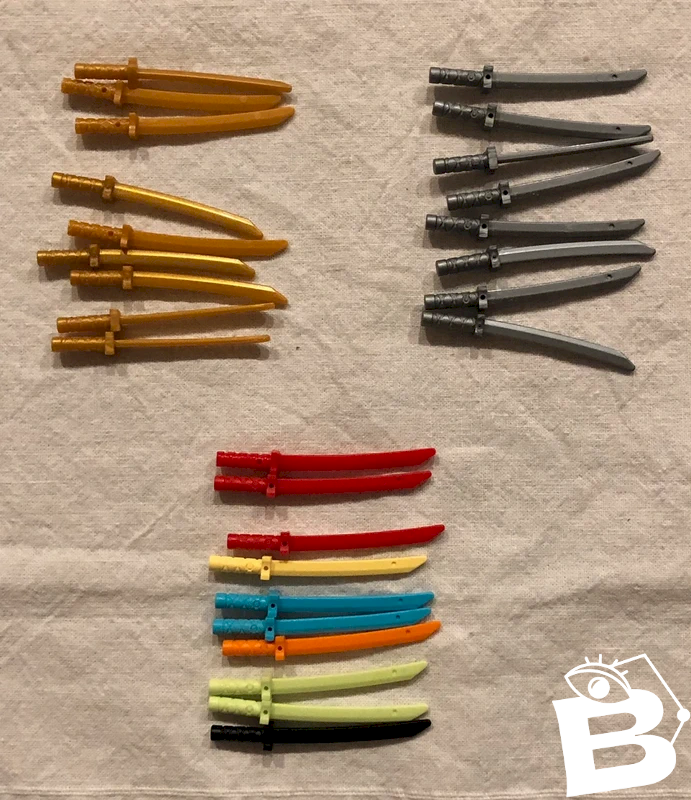 Lot d épées Lego argentées/dorées/colorées