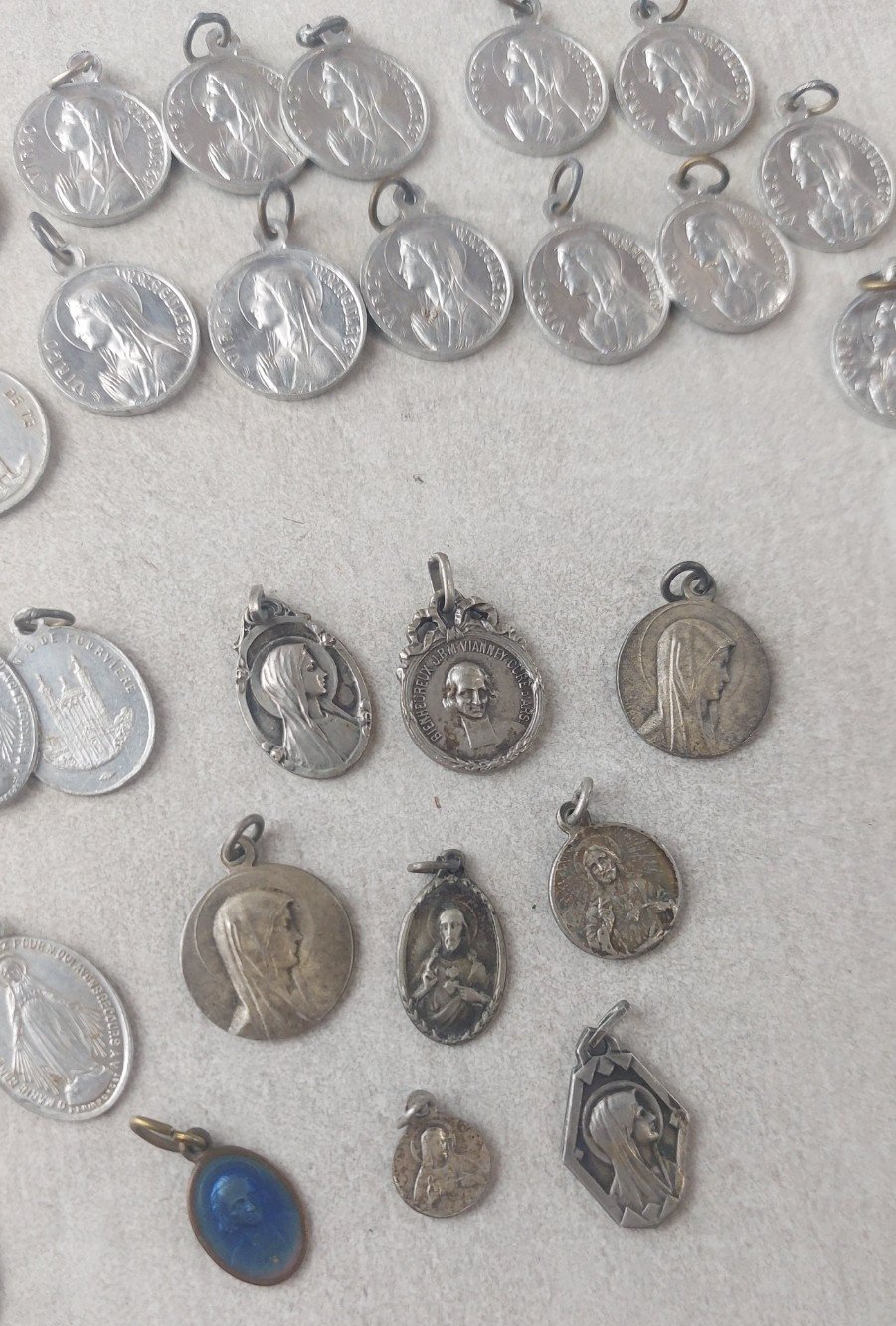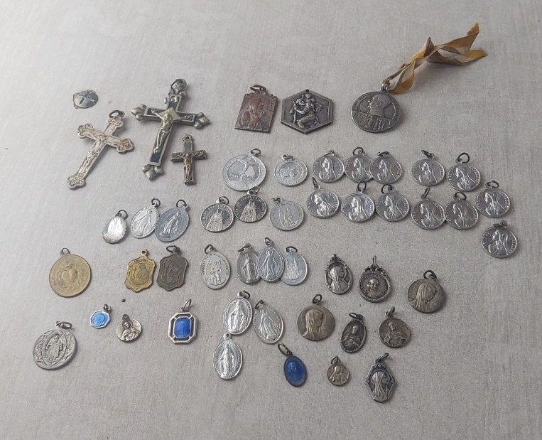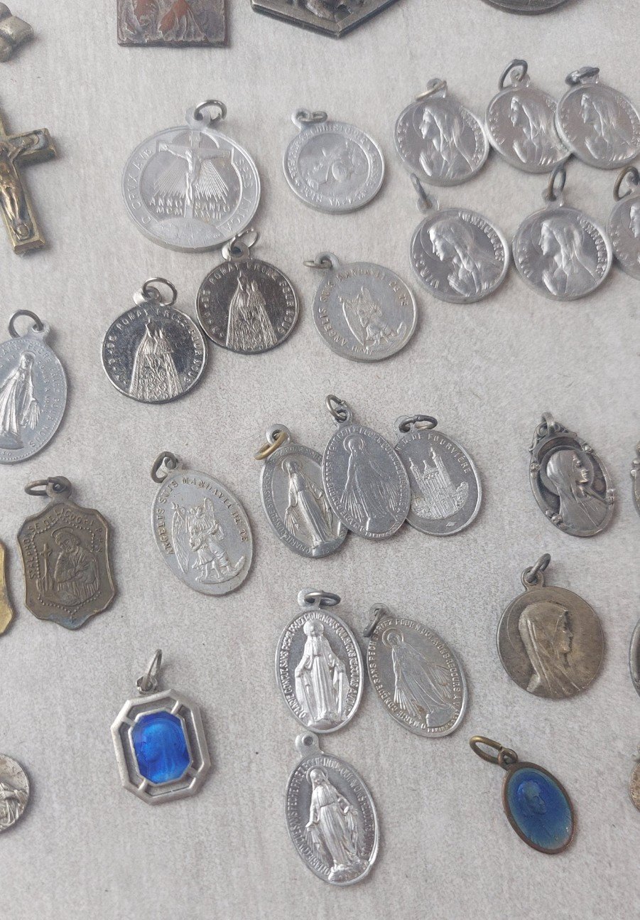 Lot d'anciens pendentifs / médaillons religieux, en métal argenté