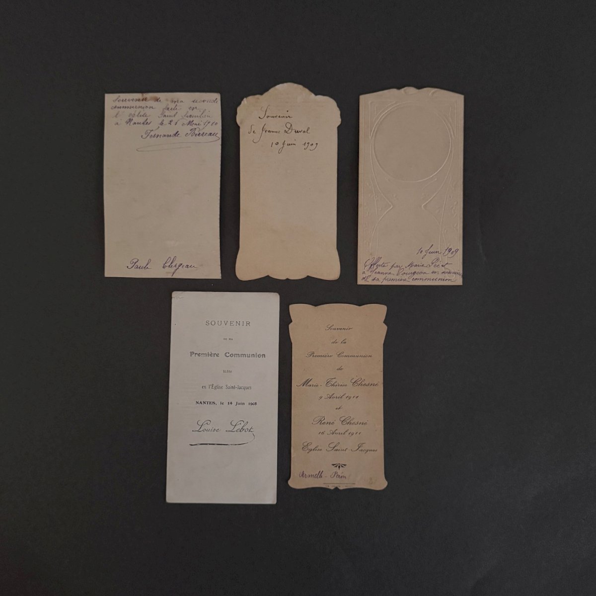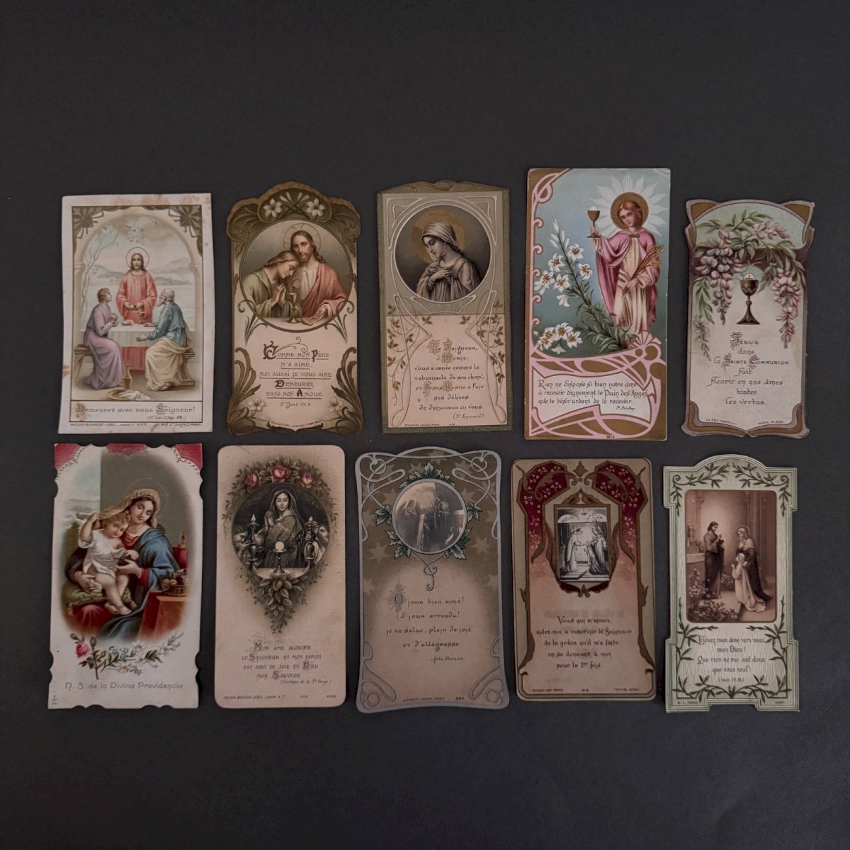 Lot de 10 images pieuses anciennes A5787 Ces images pieuses sont anciennes. Pour l’état, notons un léger jaunissement du papier et des petites taches brunes.   Nos photos vous permettent d'apprécier la qualité de l'objet. Merci de bien détailler les photos. N'hésitez pas à zoomer . Les photos font partie intégrante de la description. Dimensions : - 1re communion 1909 Hauteur : 12 cm Largeur : 6,9 cm - 2e Communion 1910 Hauteur : 11 cm Largeur : 6,4 cm   Je reste à votre disposition pour toute question. État:OccasionObjet ayant été utilisé. les éventuelles imperfections. Type:Christianisme Sous-type:Icône, Image pieuse Pays d'origine:France Matière:Papier, Carton