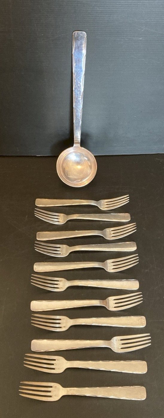 Lot de 11 fourchettes + louche en métal argenté poinçon 84 gr et 10 gr