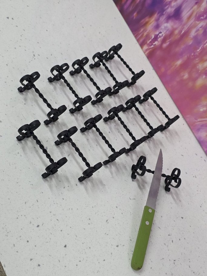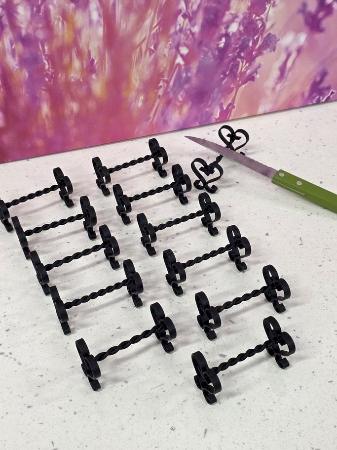 lot de 12 porte-couteaux en fer forgé noir, en très bon état, dimensions 7.3x3.7cm