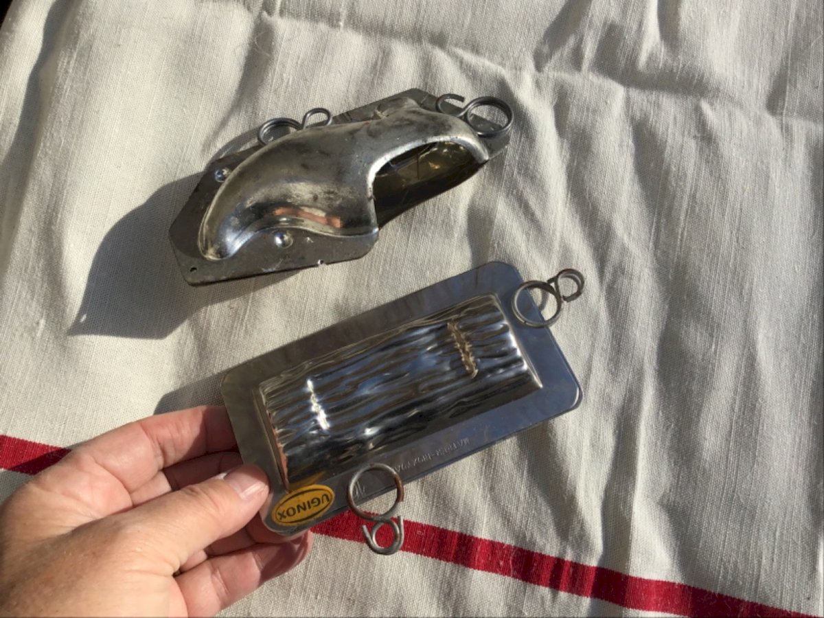 Lot de 2 ANCIEN MOULE A CHOCOLAT ? / OLD chocolaté  ANCIEN MOULE A CHOCOLAT ? / OLD CHOCOLATE MOLD-. État:Occasion: Objet ayant été utilisé. Consulter la description du vendeur pour avoir plus de détails ...Occasion: Objet ayant été utilisé. les éventuelles imperfections. Nombre de pièces:1 Type:moule Sous-type:fer blanc Matière:Métal Genre:Industriel