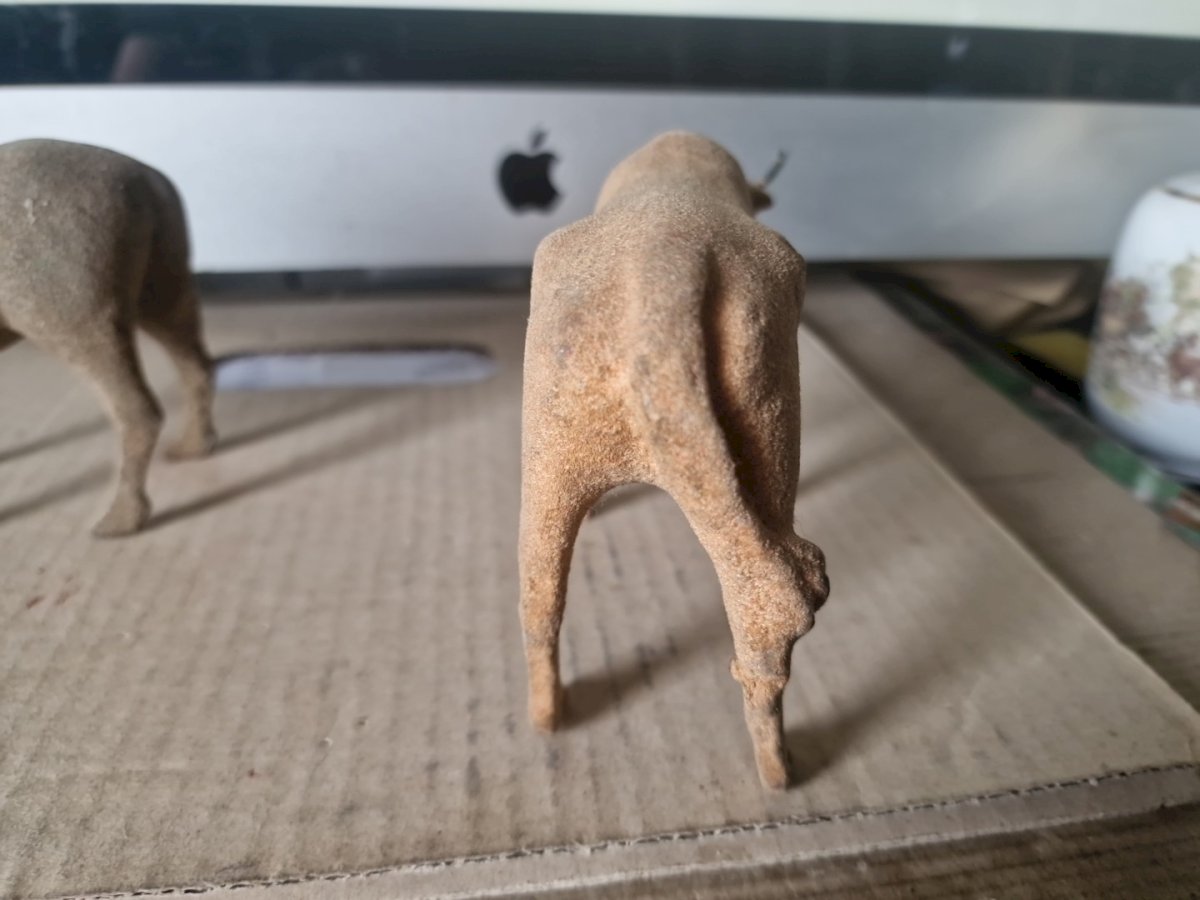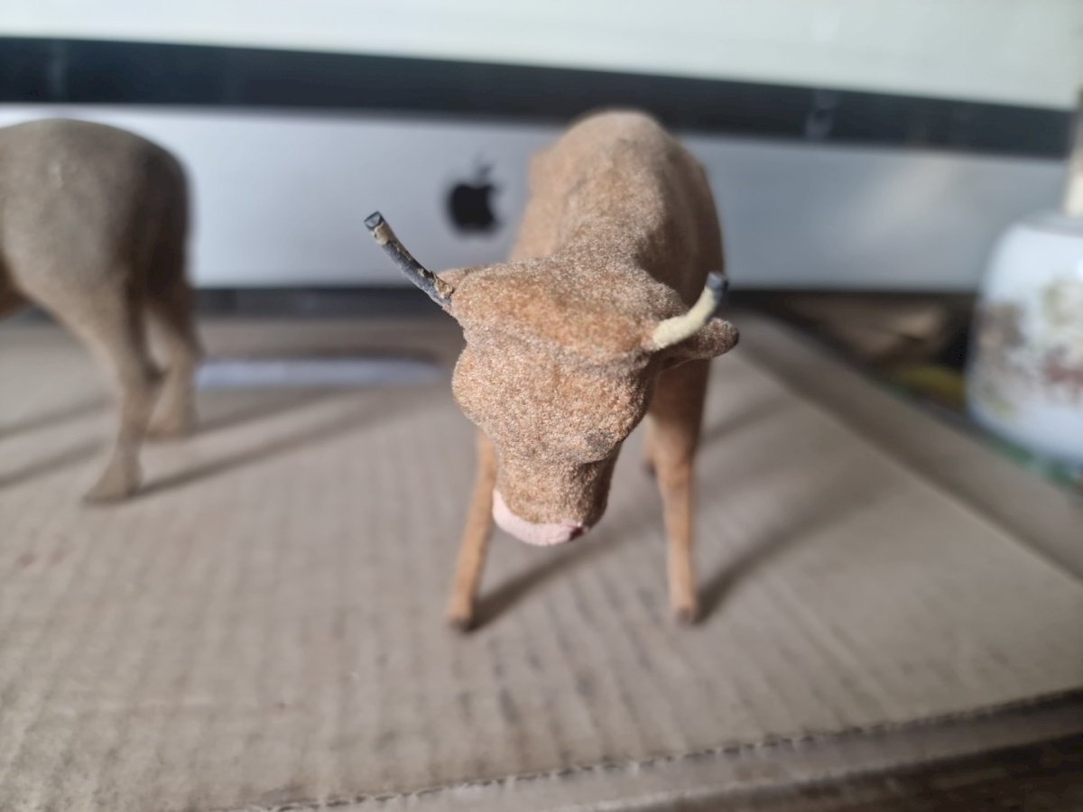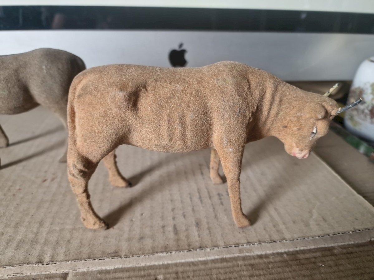 Lot de 2 santons l'ane et le boeuf Devineau floqués_ long boeuf 14 x 9 cm