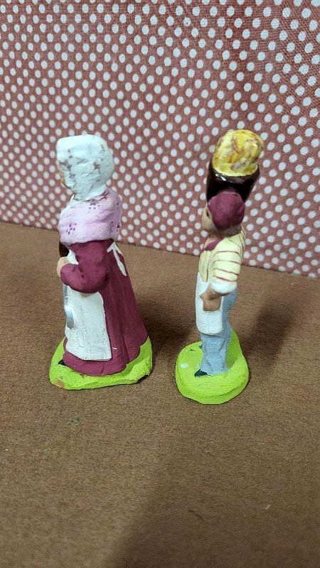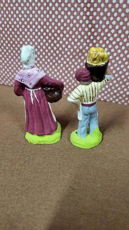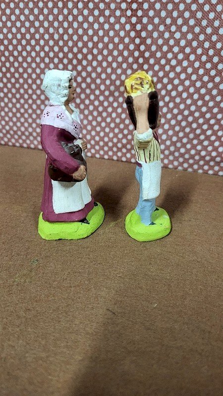 joli lot de 2 santons en terre cuite  ils sont en très bon état  ils mesurent 8 cm de haut sur 3.5 cm de profondeur  et 4 cm de large Matière:TERRE CUITE Thème:Crèche Pays d'origine:France