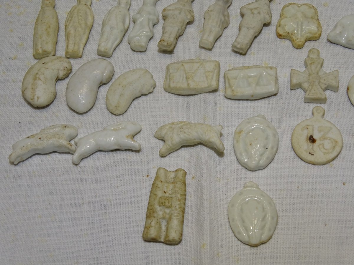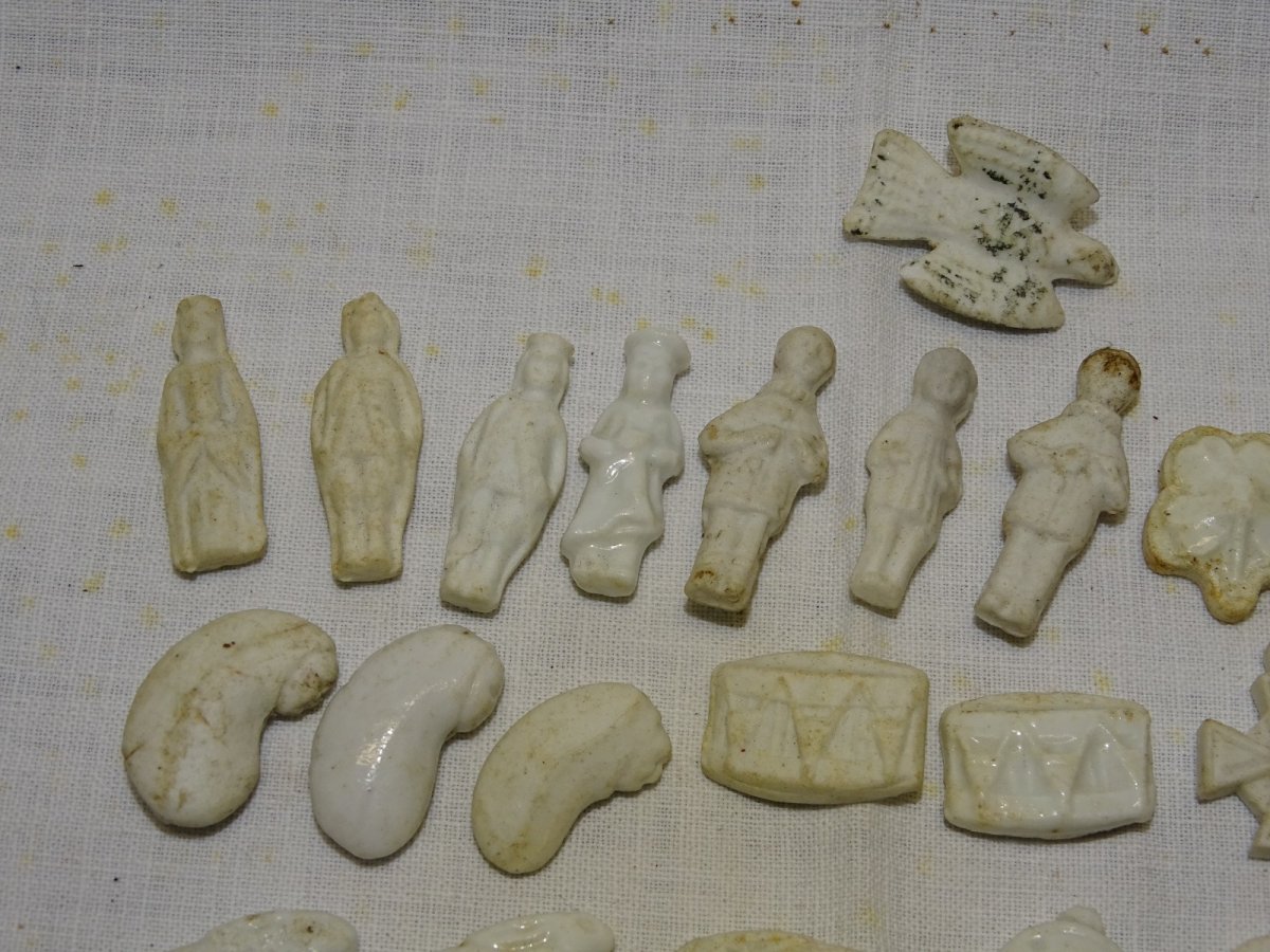 Lot de 27 fèves différentes formes, porcelaine ou biscuit émaillé ou non, 1ère époque à déterminer - ( photo ) - en état sorties de grenier (voir photos) - Réf. 1V240718/582 - Colombe 2,88 x 1,90 cm - La plus grande 3,32 x 1,24 cm - Haricot Plus petit 2,08 x 1,20 cm - poids 61 g Pour me contacter mon adresse mail : EXPEDITION POSSIBLE EN MONDIAL RELAY ou COLISSIMO sur demande TRES BON EMBALLAGE GARANTI MERCI de BIEN REGARDER TOUTES les PHOTOS car ELLES FONT PARTIE INTEGRANTE de la DESCRIPTION et PERMETTENT de VOIR l'OBJET AU MIEUX avec SES PETITS DEFAUTS EVENTUELS - État:Occasion: Objet ayant été utilisé. Consulter la description du vendeur pour avoir plus de détails ...Occasion: Objet ayant été utilisé. les éventuelles imperfections. Thème:Ancienne