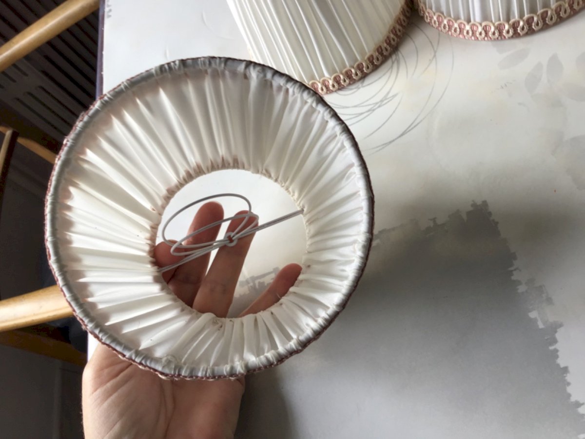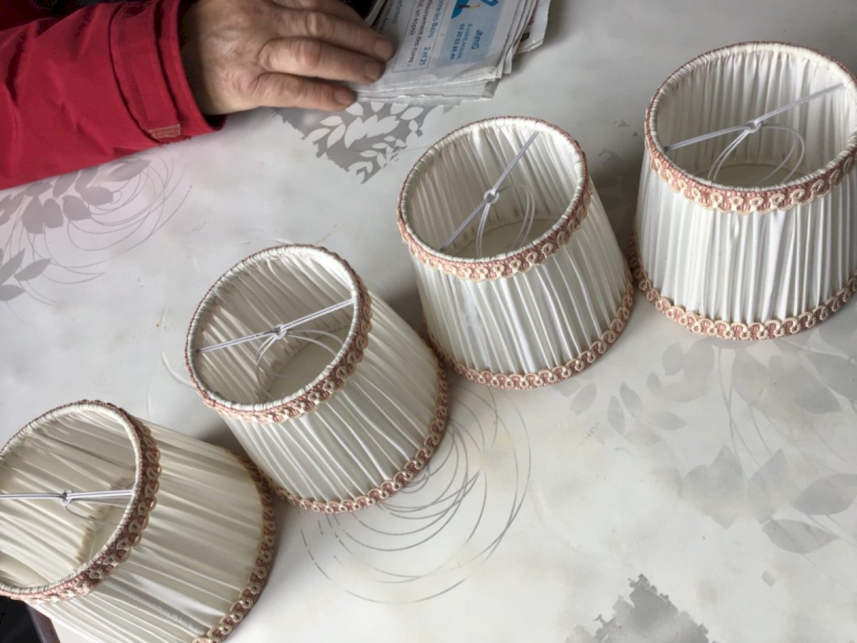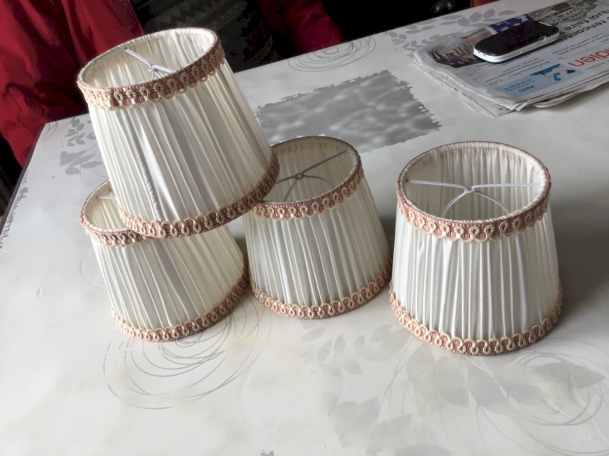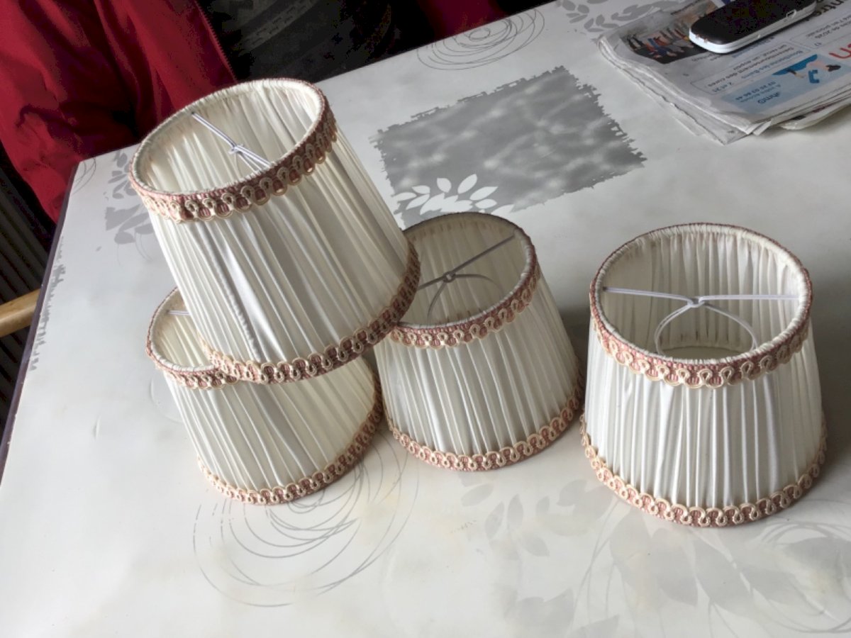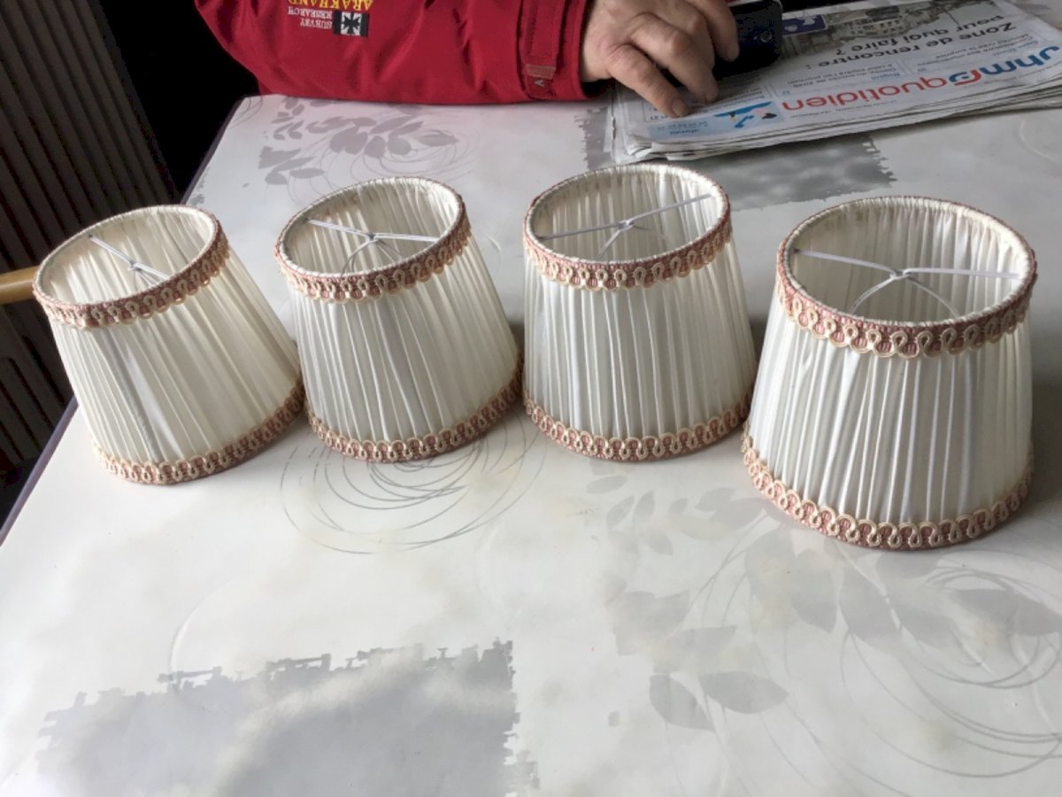 LOT DE 4 ANCIENS PETITS ABAT JOUR EN TISSUS PLISSE A PINCE Style Napoléon TBE