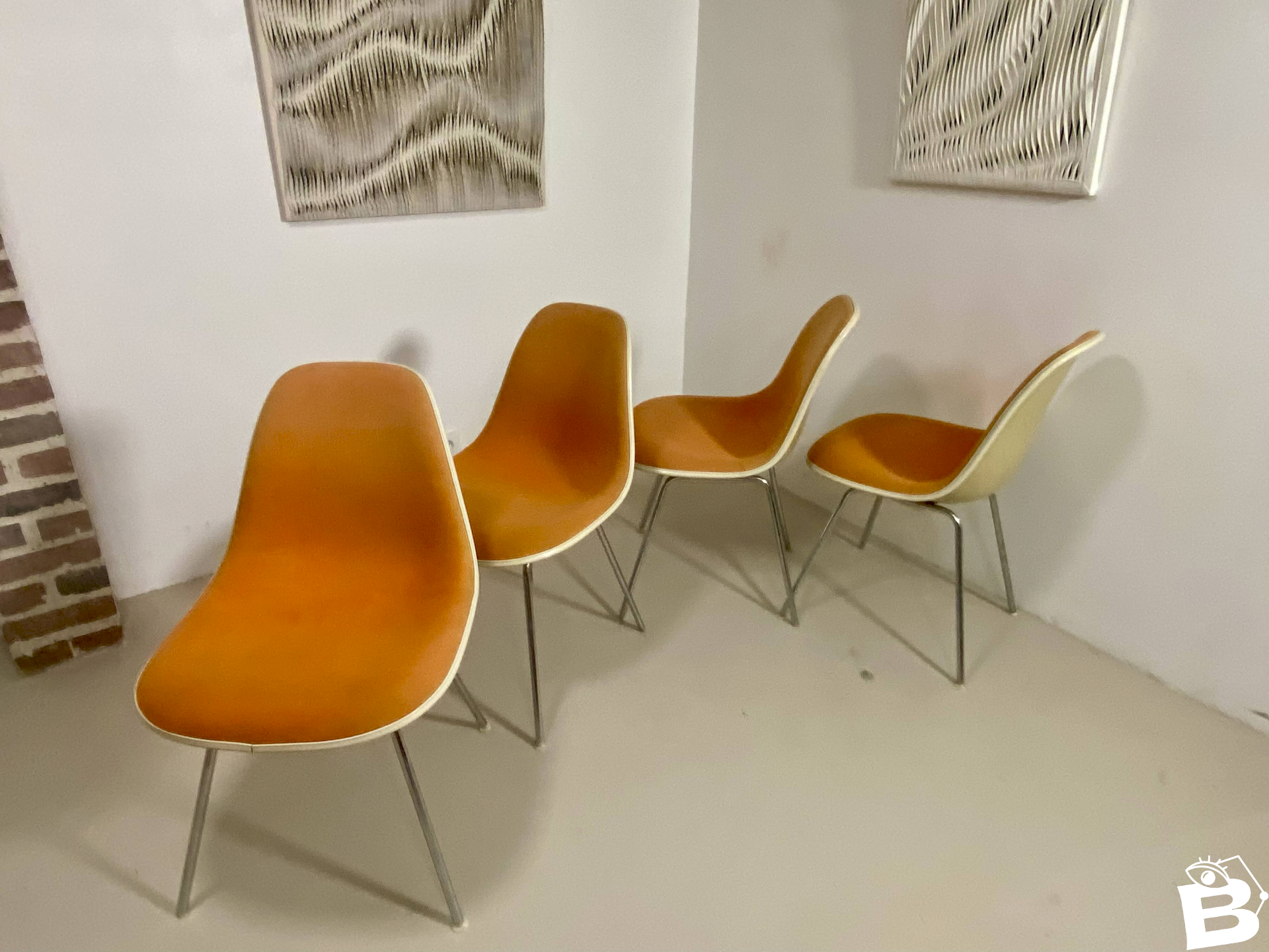 Lot de 4 chaises DSW Eames – Herman Miller (1952) Orange Fibredeverre