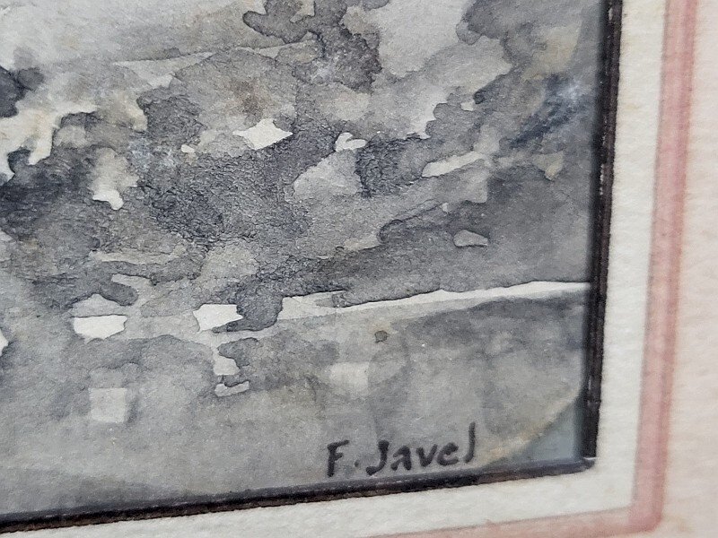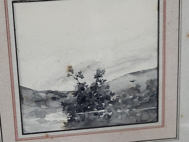 LOT DE 4 PETITES AQUARELLES SOUS VERRE SIGNEES F JAVEL