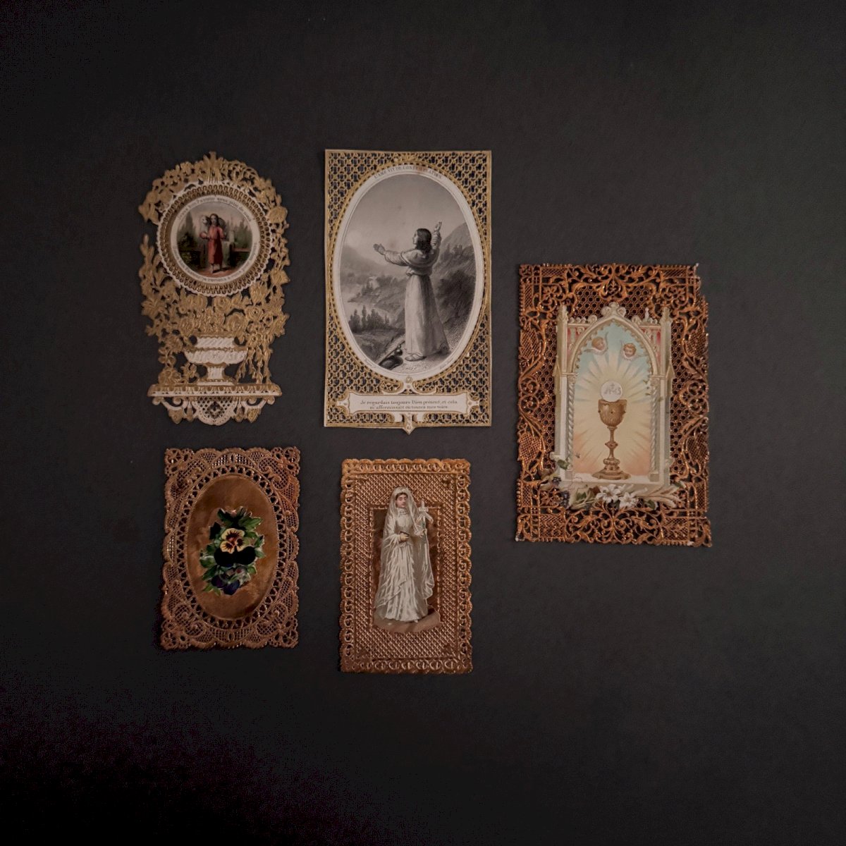 Lot de 5 canivets anciens images pieuses dont une à système A5796