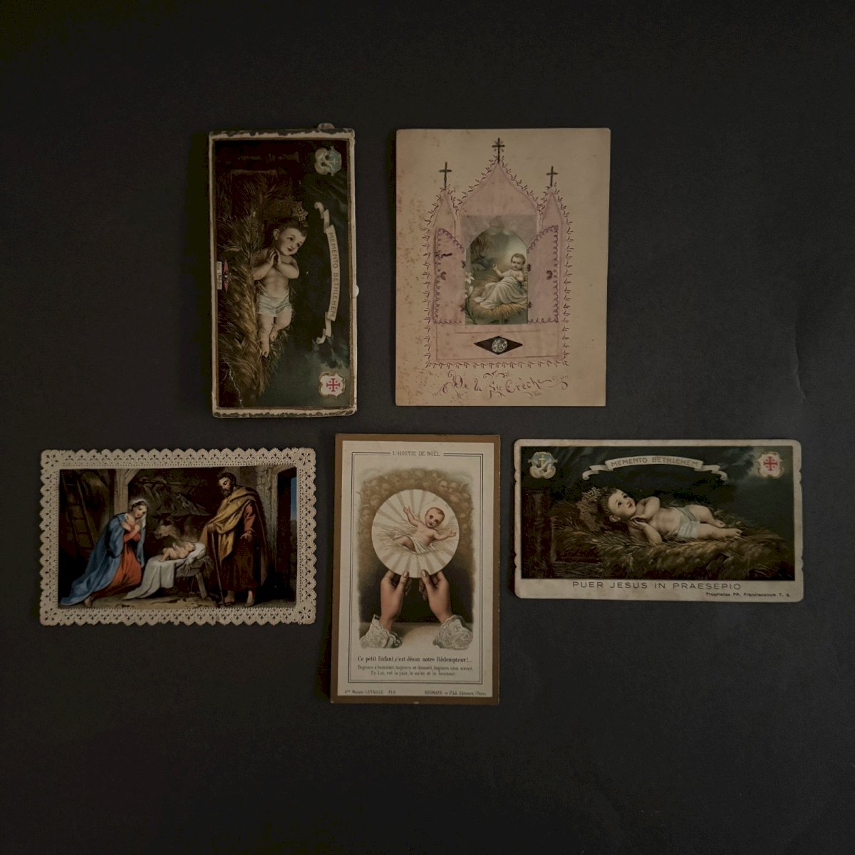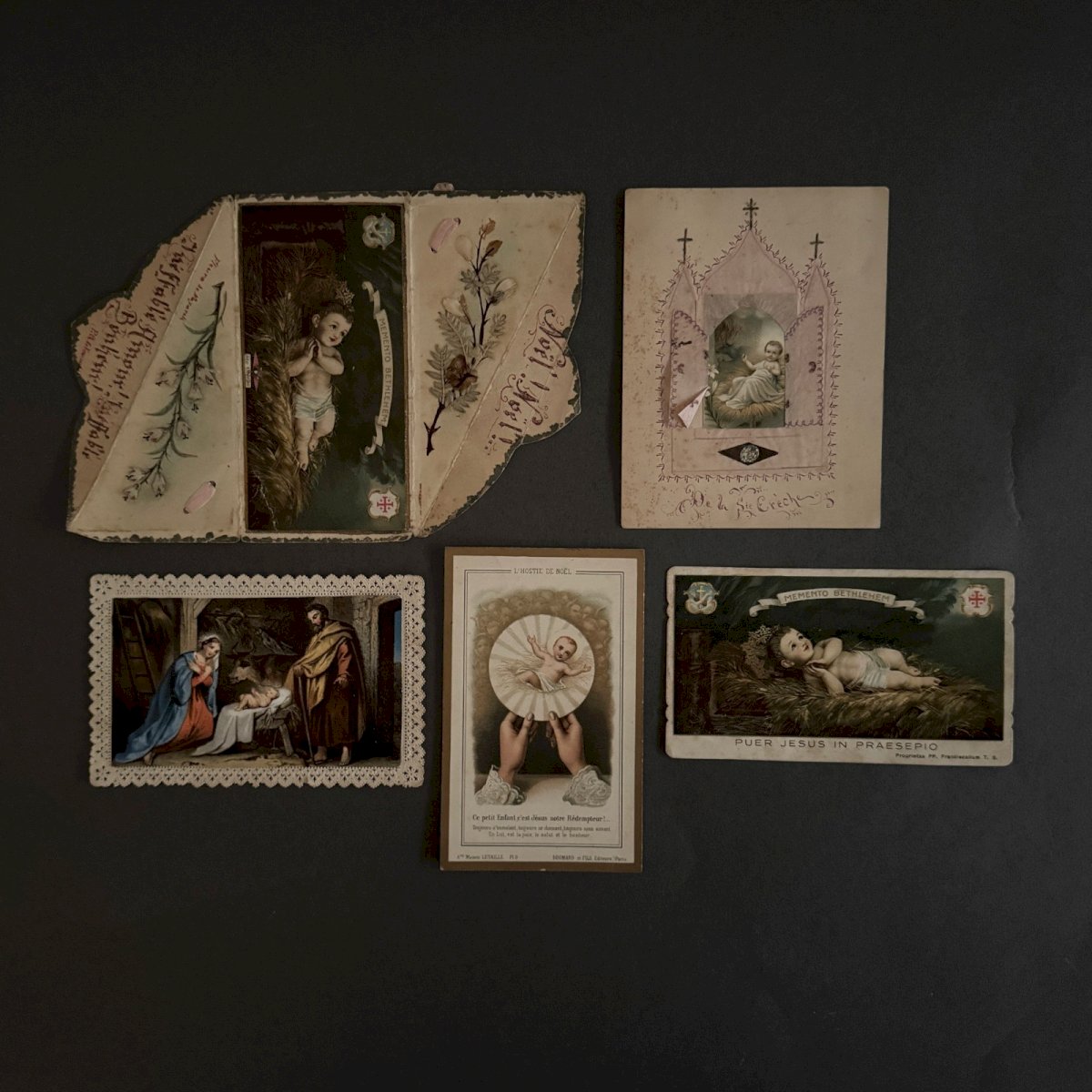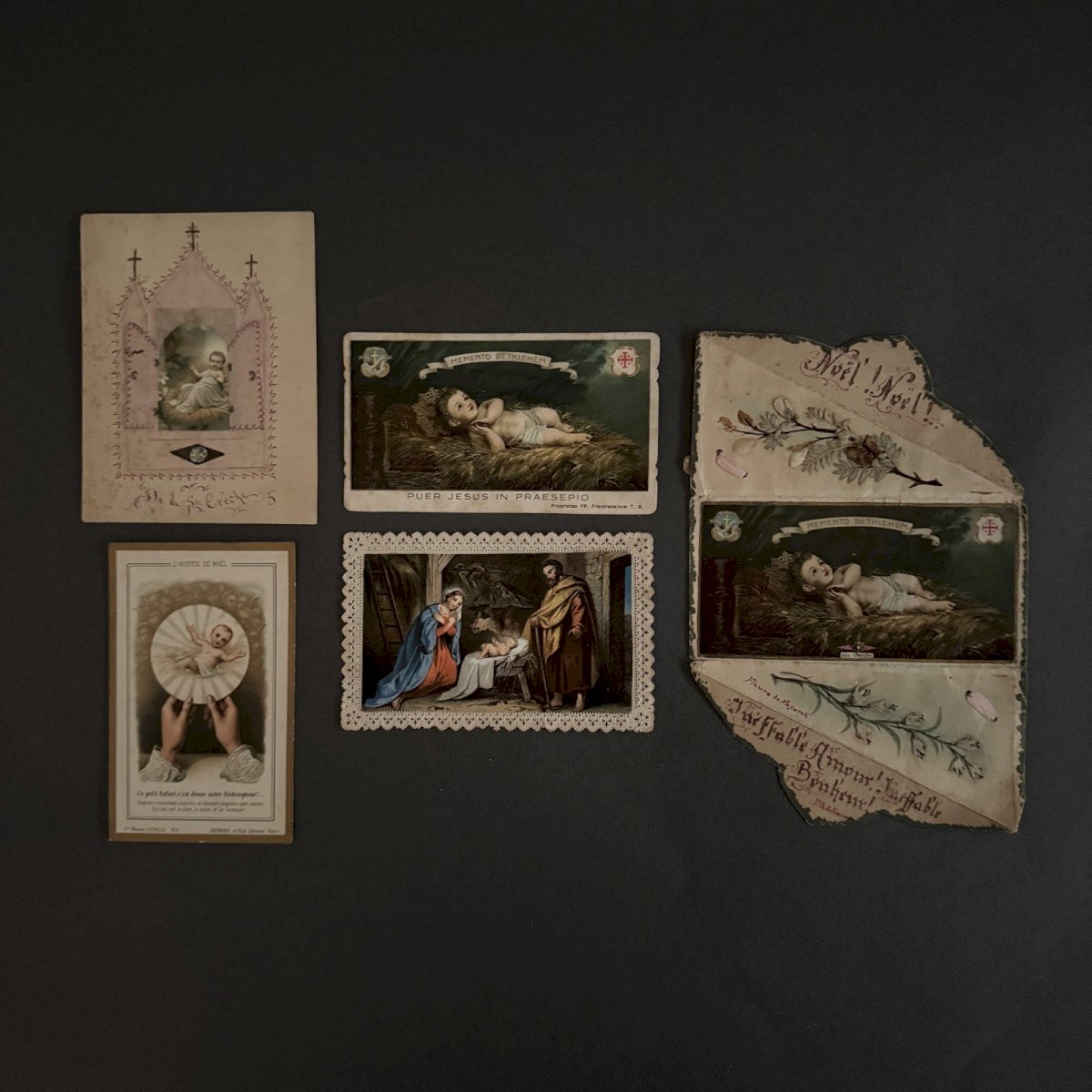 Lot de 5 images pieuses anciennes et canivet Nativité A5786