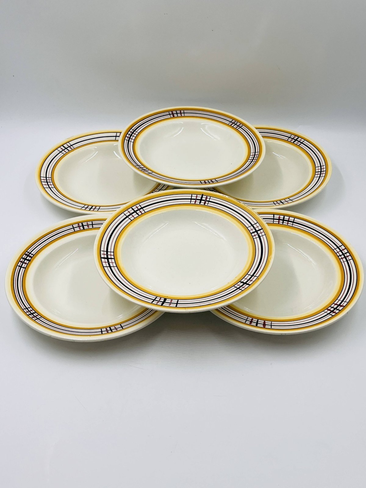 Ce magnifique ensemble de six assiettes creuses BFK (Boch Frères Keramis) apporte une touche de charme vintage à votre table.