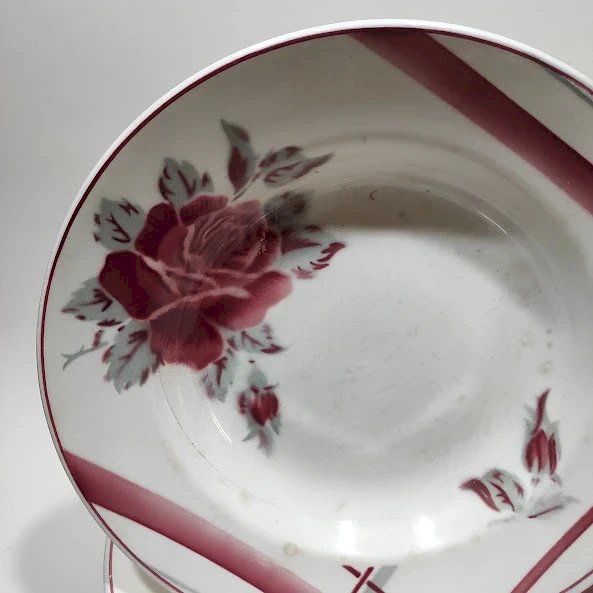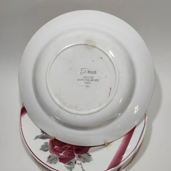 Lot de 6 assiettes Digoin Sarreguemines, décor "La Rose" 4 creuses et 2 plates Envoi rapide et soigné ???? Mesures: 22,5 cm pour plates et 23 cm pour les creuses .