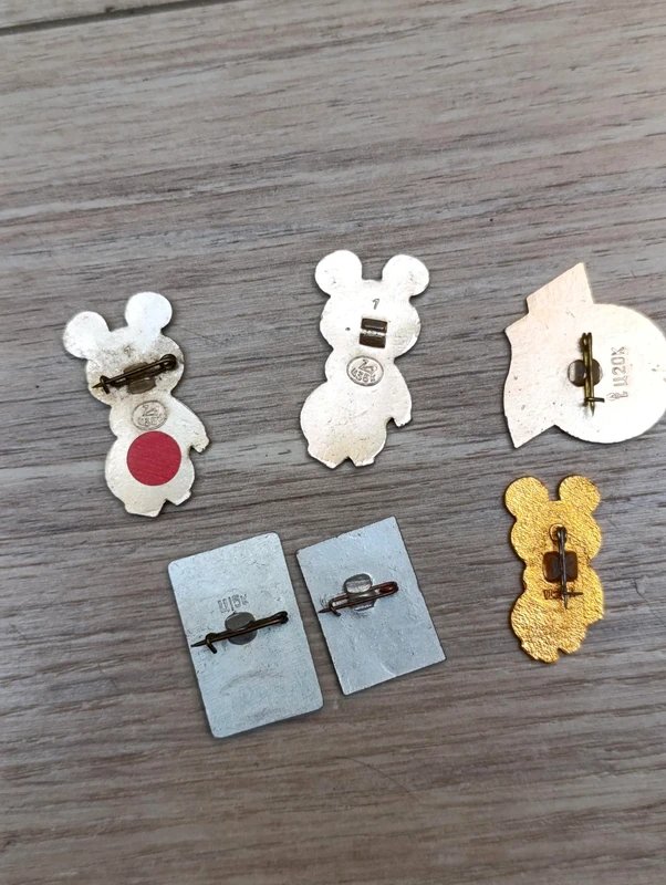 lot de 6 petites broches d'origine russe ou sovietique en bon etat 3 représentants la mascotte des jo de moscou (manque le systeme de broche sur une)