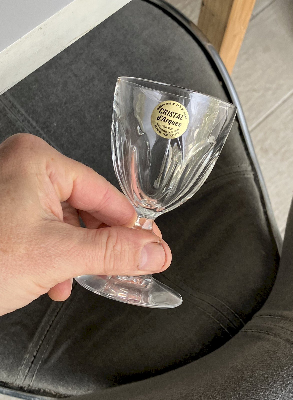 lot de 5 verres a vin blanc ou porto Cristal d' Arques modele Rambouillet occasion, bon etat hauteur 10,8 cm diametre buvant 6,5 cm expedition par MONDIALRELAY