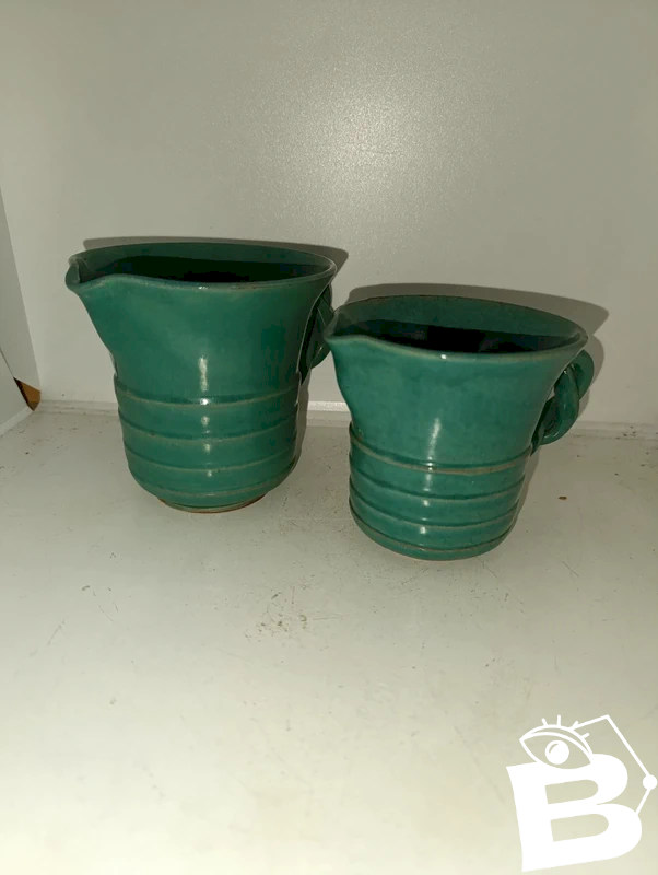 lot de deux pots à lait ou petit pichet signés AC en bon etat Vert
